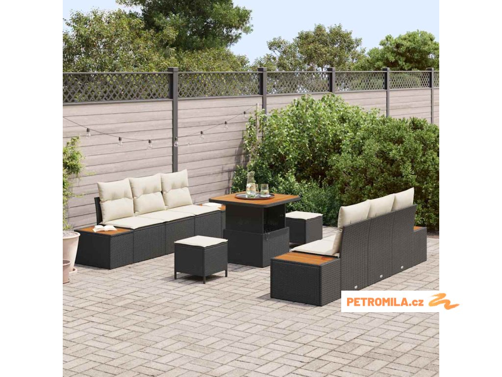 Sada zahradních pohovek s polštářem 9 pcs Černá Poly ratan
