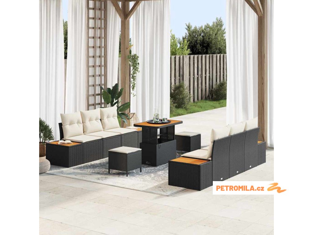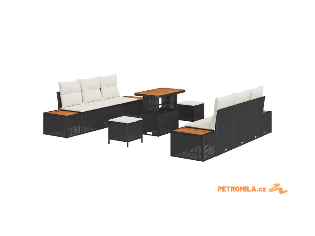 Sada zahradních pohovek s polštářem 9 pcs Černá Poly ratan