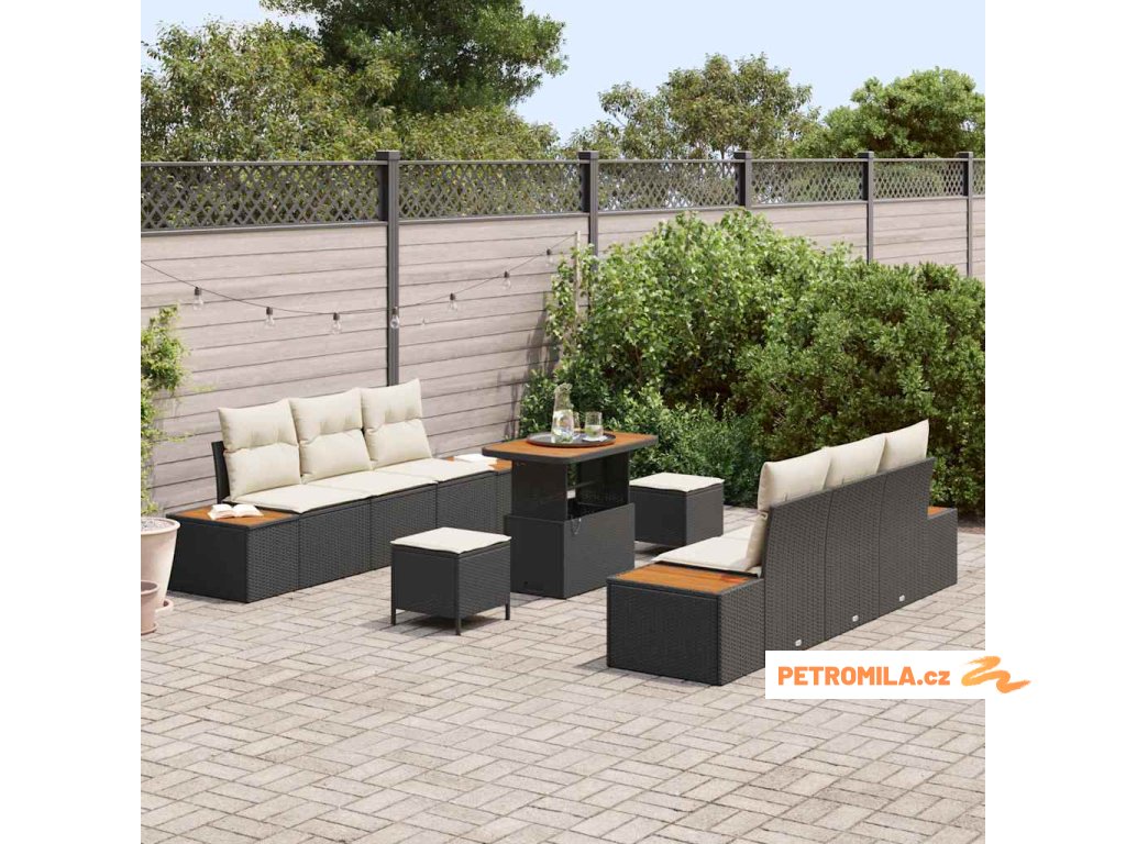 9dílný zahradní jídelní set s poduškami černý polyratan