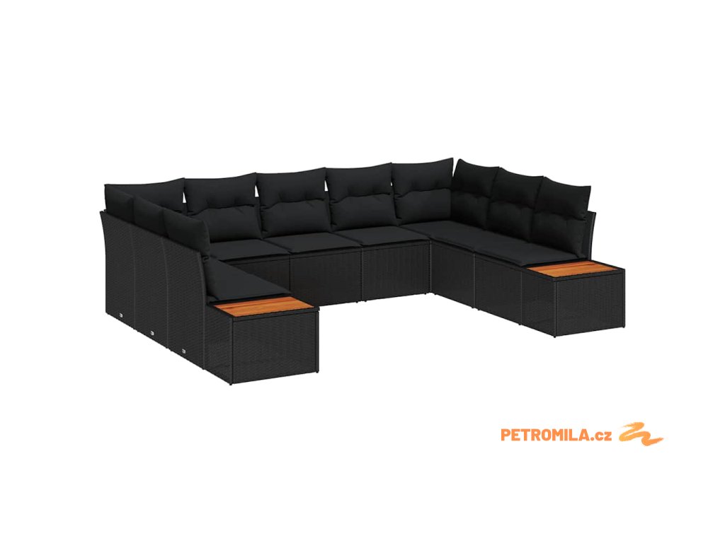 Sada zahradních pohovek s polštářem 9 pcs Černá polyratan