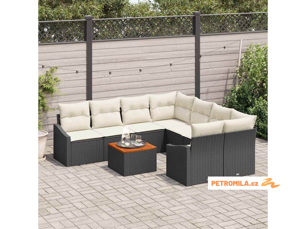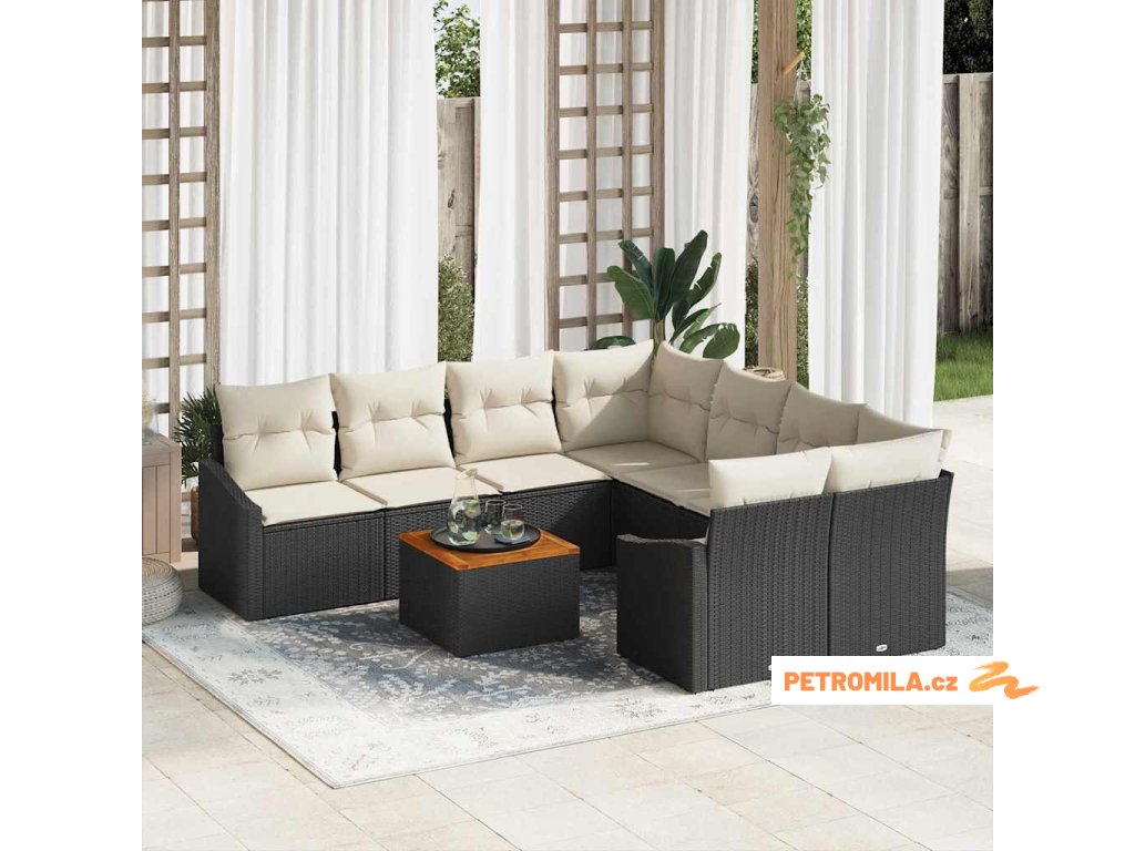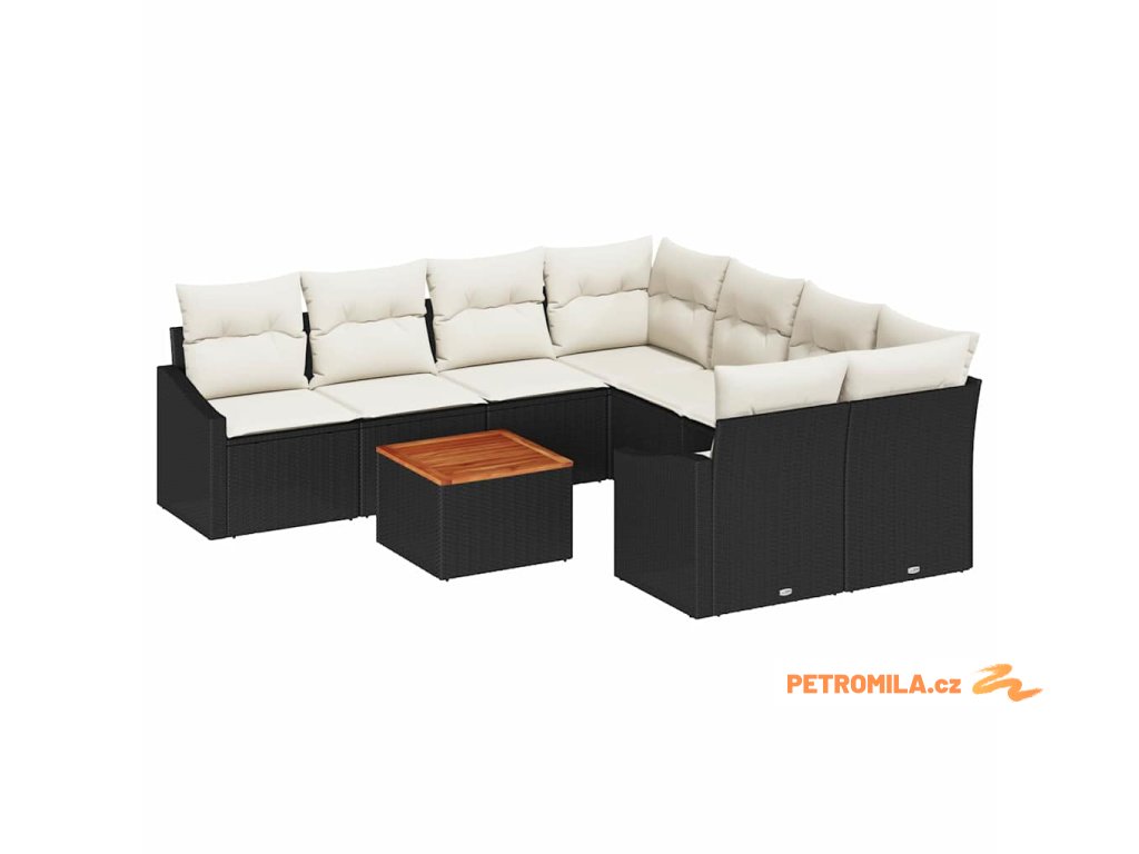 Sada zahradních pohovek s polštářem 9 pcs Černá polyratan