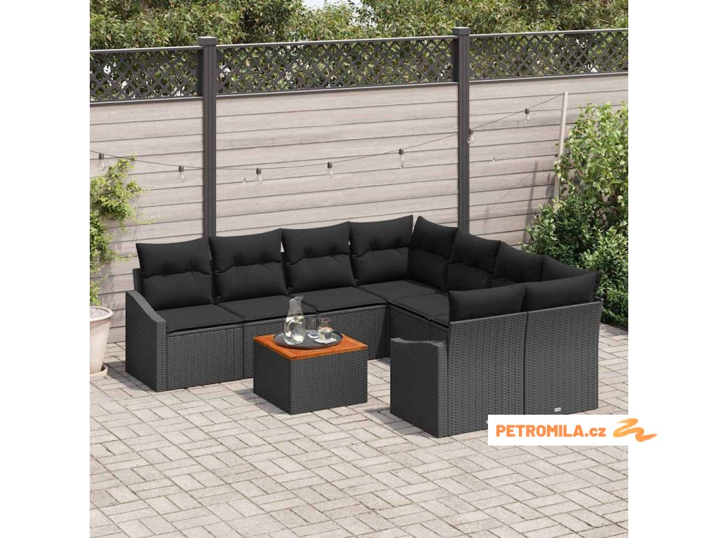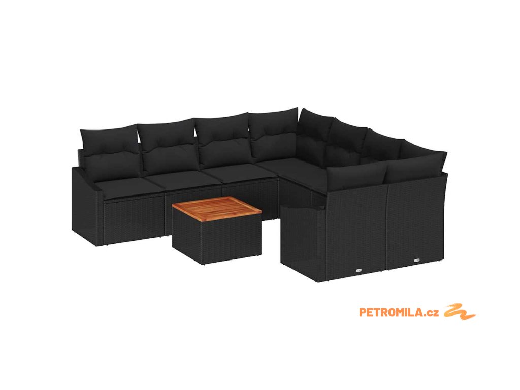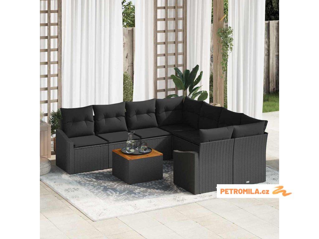 Sada zahradních pohovek s polštářem 9 pcs Černá polyratan