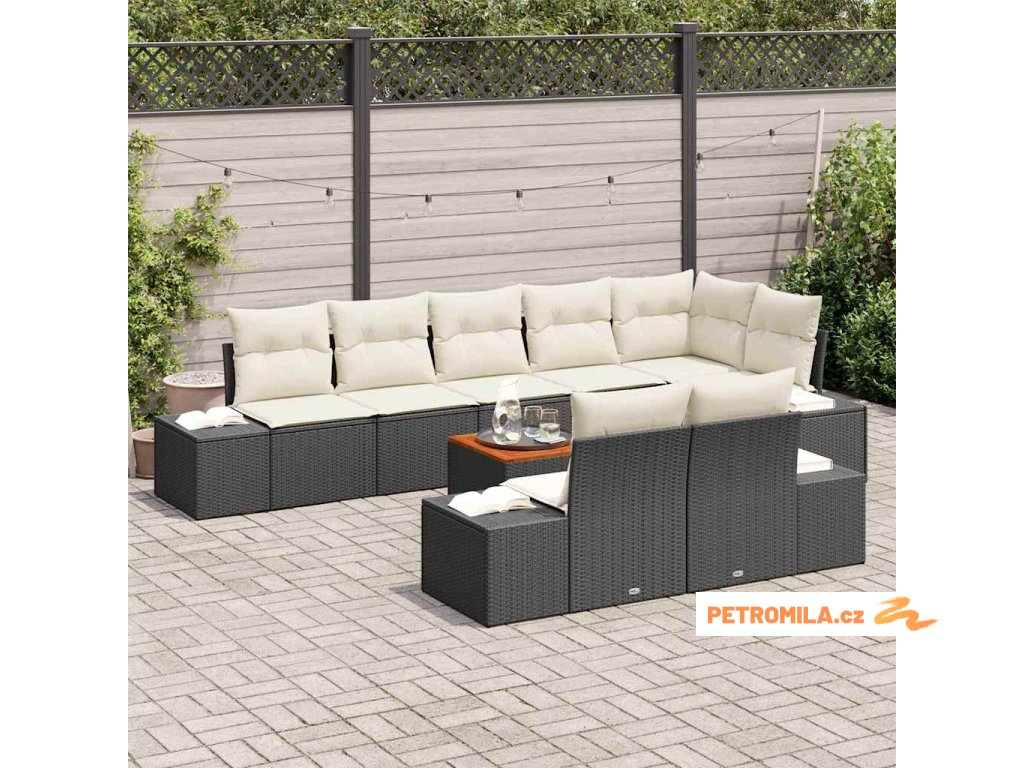 Sada zahradních pohovek s polštářem 9 pcs Černá polyratan