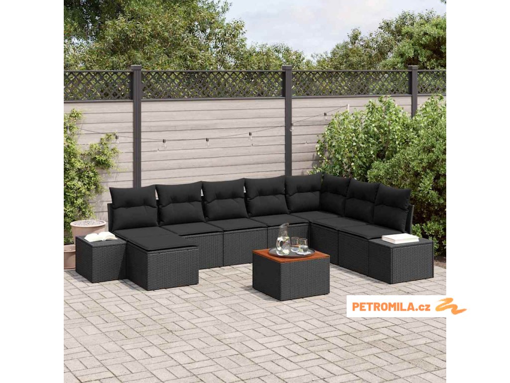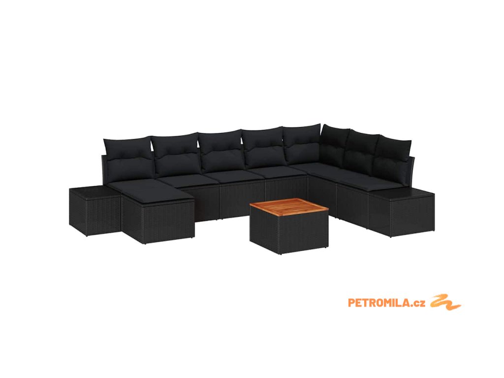Sada zahradních pohovek s polštářem 9 pcs Černá polyratan