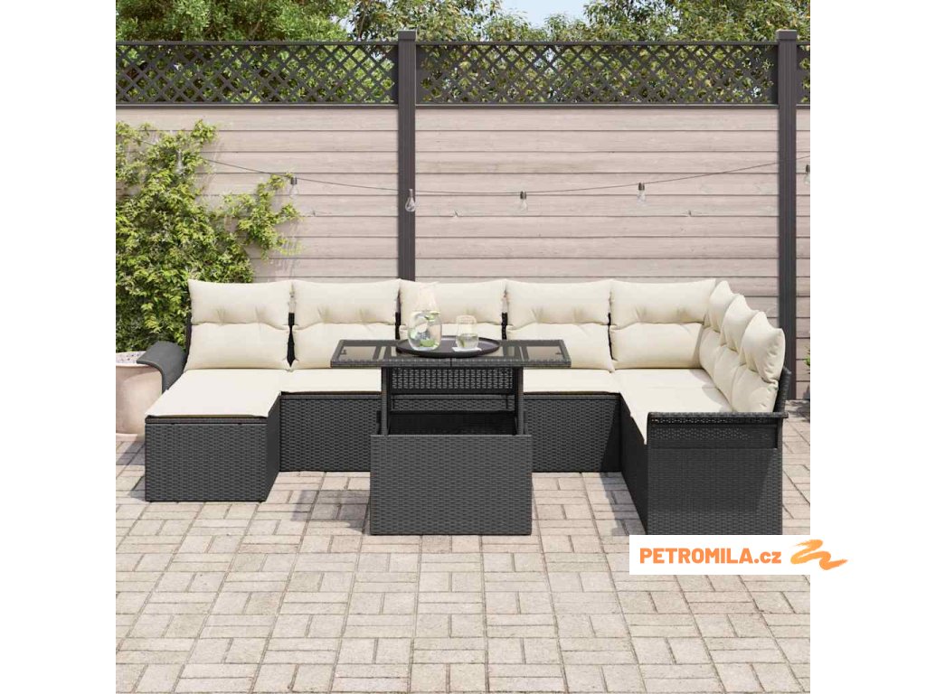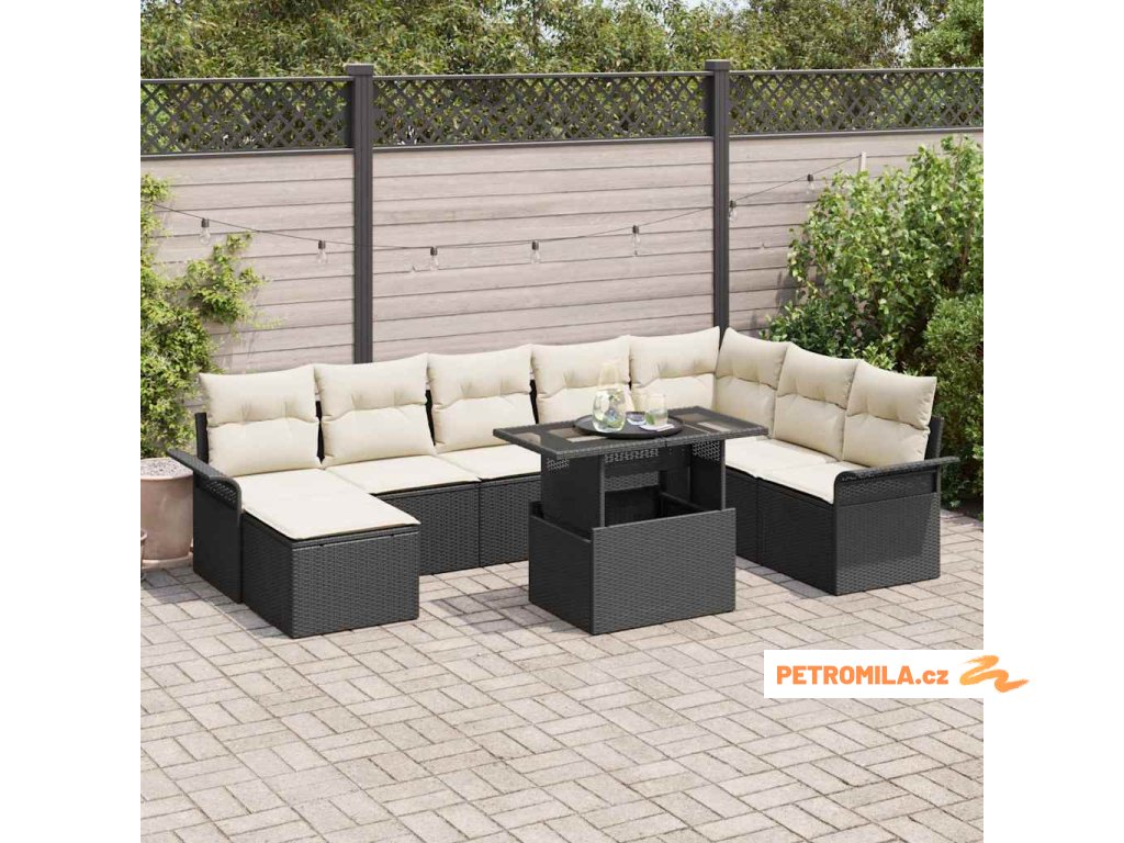Sada zahradních pohovek s polštářem 9 pcs Černá polyratan