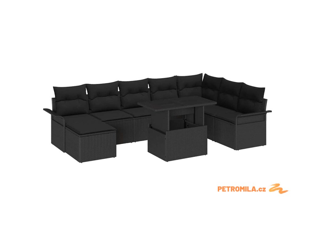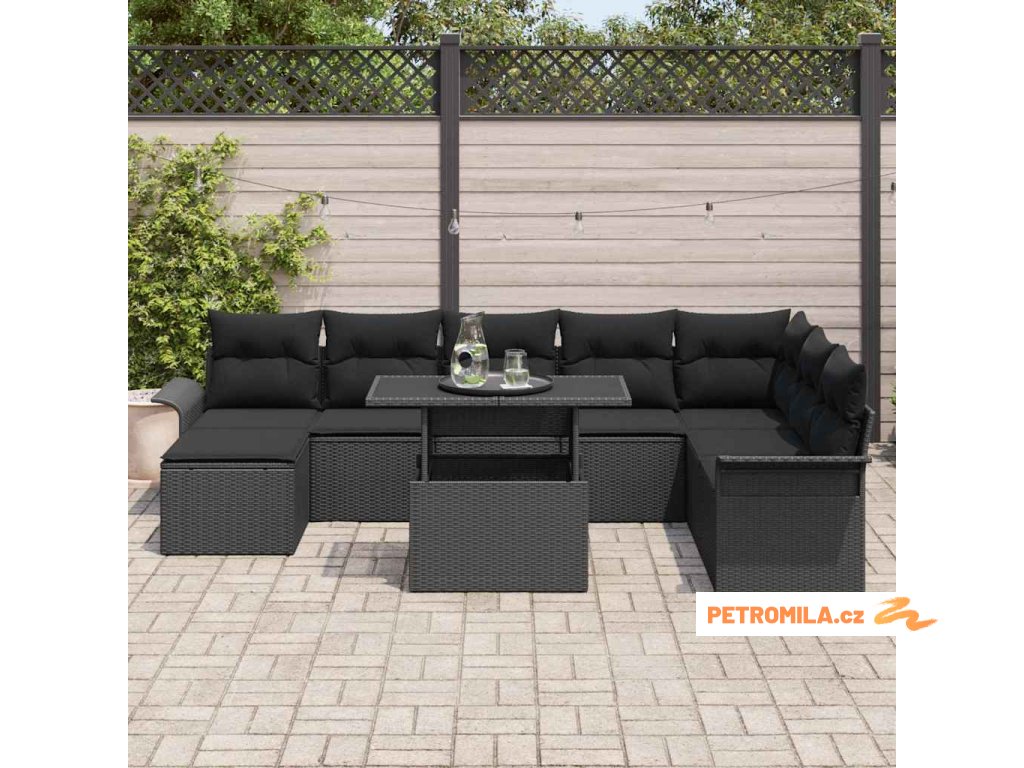 Sada zahradních pohovek s polštářem 9 pcs Černá polyratan