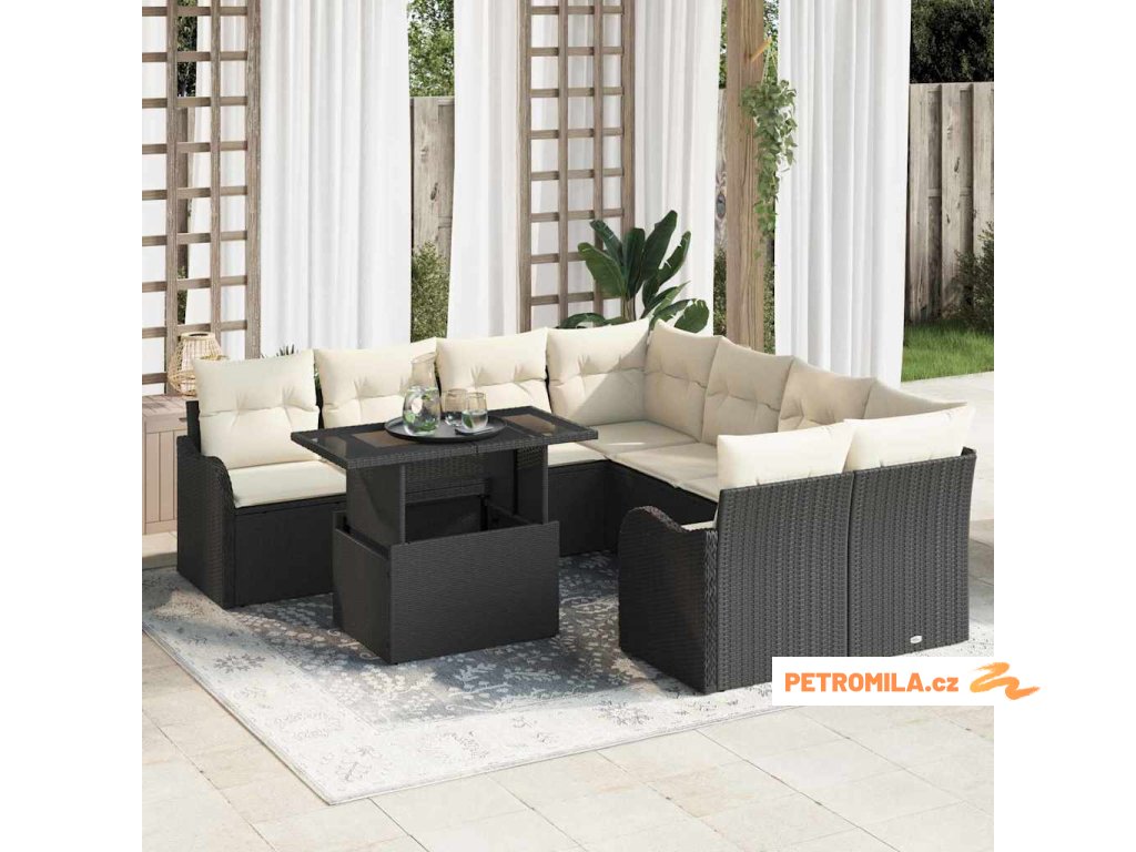 Sada zahradních pohovek s polštářem 9 pcs Černá Polyratan