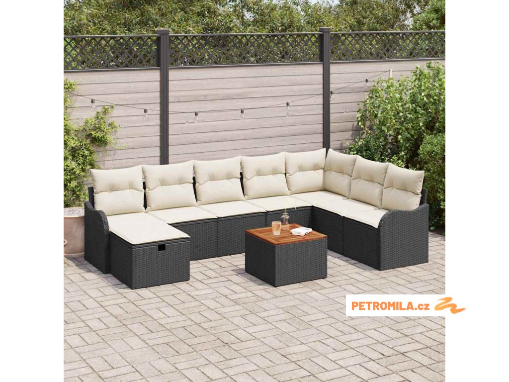 Sada zahradních pohovek s polštářem 9 pcs Černá polyratan