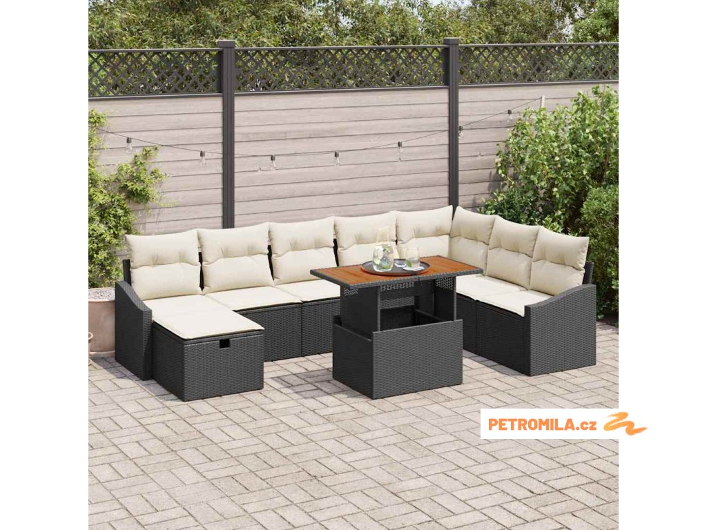 Sada zahradních pohovek s polštářem 9 pcs Černá polyratan