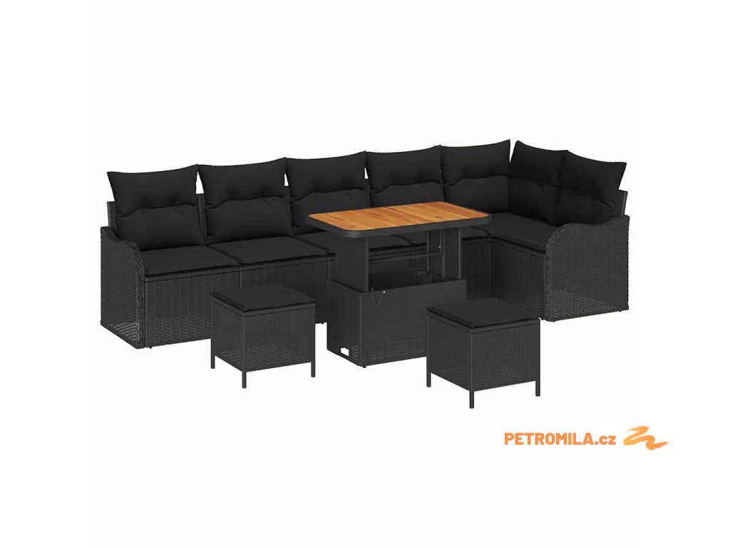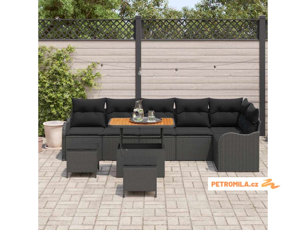 Sada zahradních pohovek s polštářem 9 pcs Černá polyratan