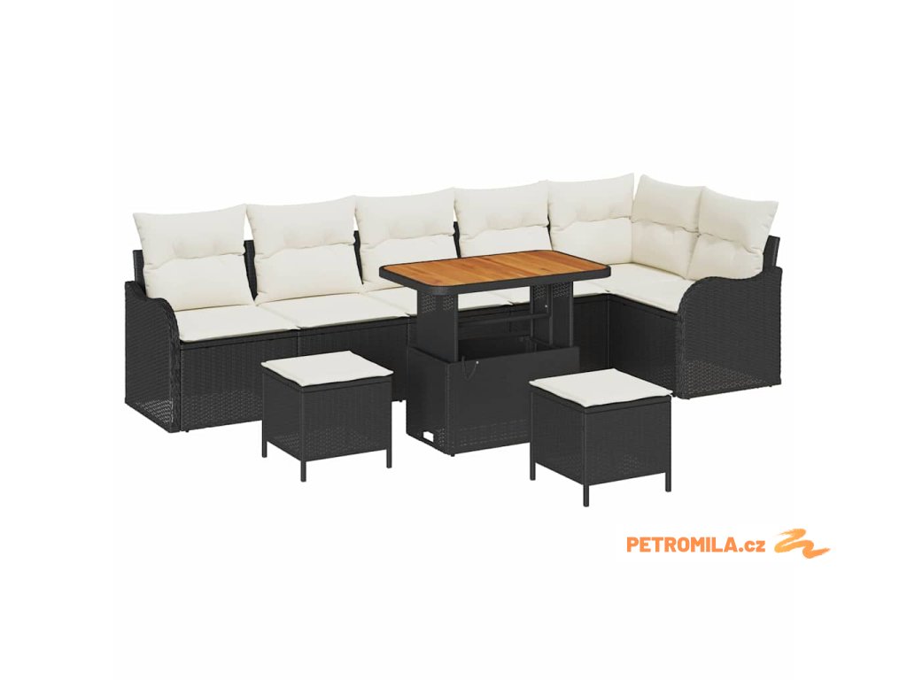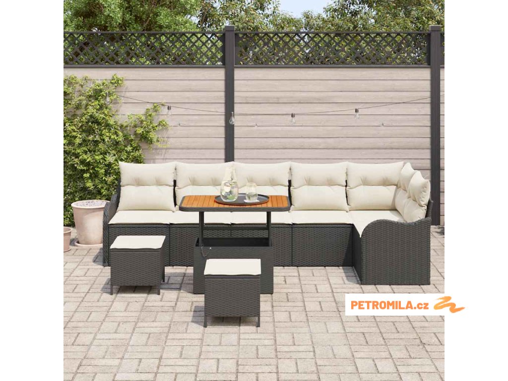 Sada zahradních pohovek s polštářem 9 pcs Černá polyratan
