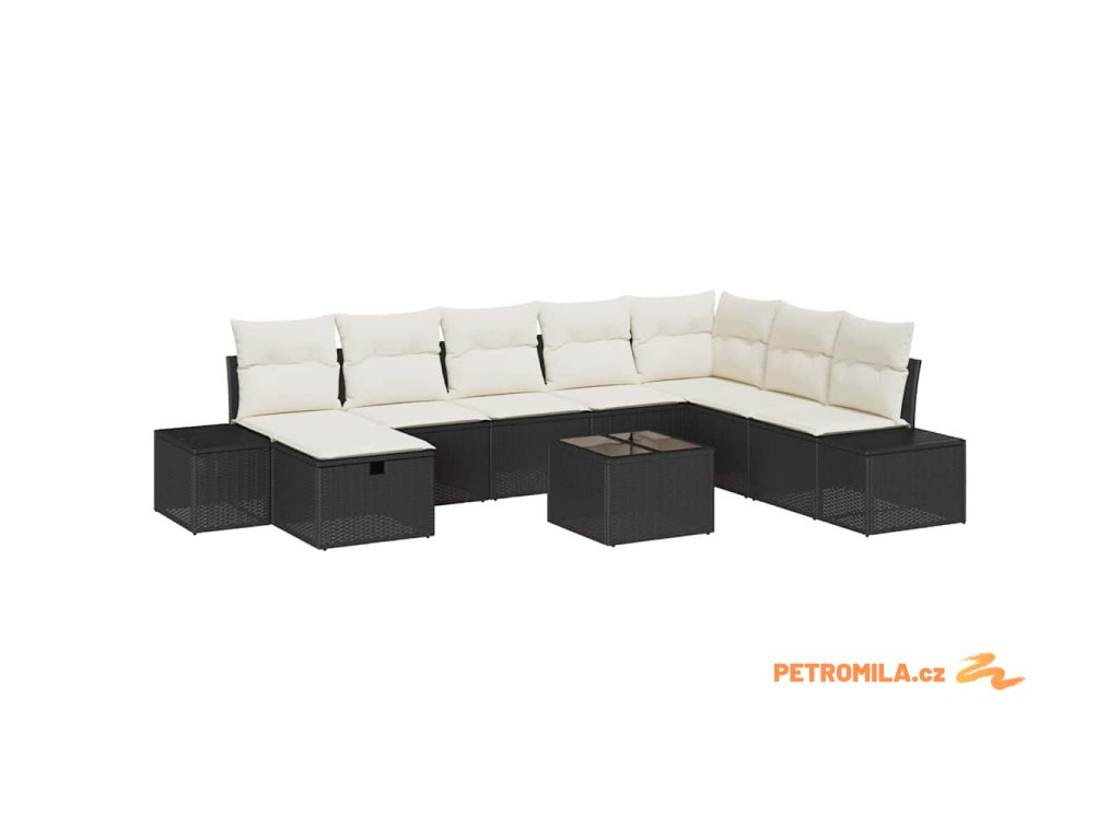 Sada zahradních pohovek s polštářem 9 pcs Černá polyratan