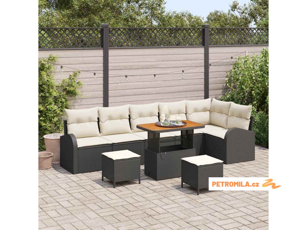 Sada zahradních pohovek s polštářem 9 pcs Černá polyratan