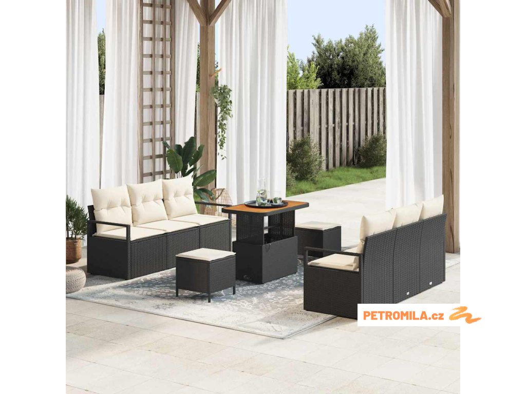 Sada zahradních pohovek s polštářem 9 pcs Černá polyratan