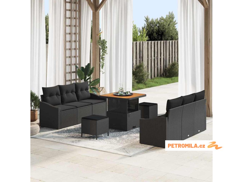 Sada zahradních pohovek s polštářem 9 pcs Černá polyratan