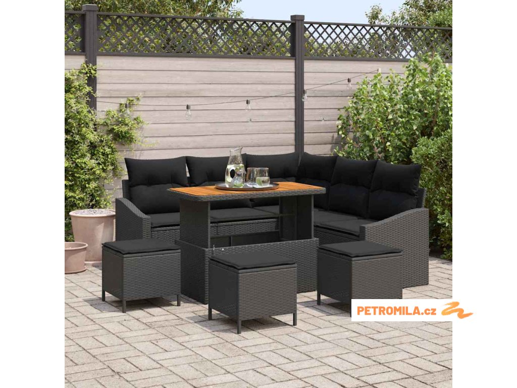 Sada zahradních pohovek s polštářem 9 pcs Černá polyratan