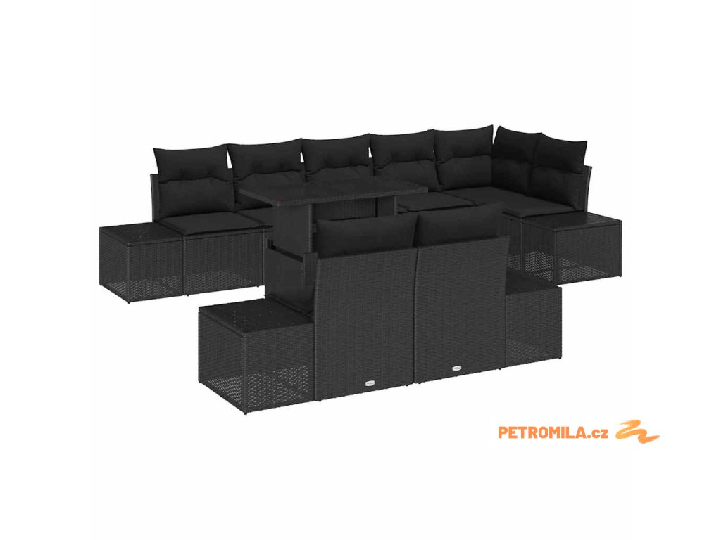 Sada zahradních pohovek s polštářem 9 pcs Černá polyratan