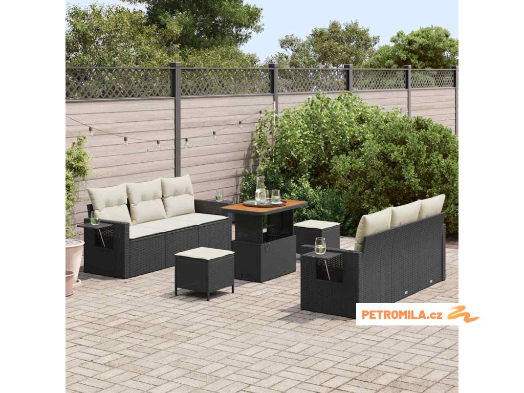 Sada zahradních pohovek s polštářem 9 pcs Černá polyratan