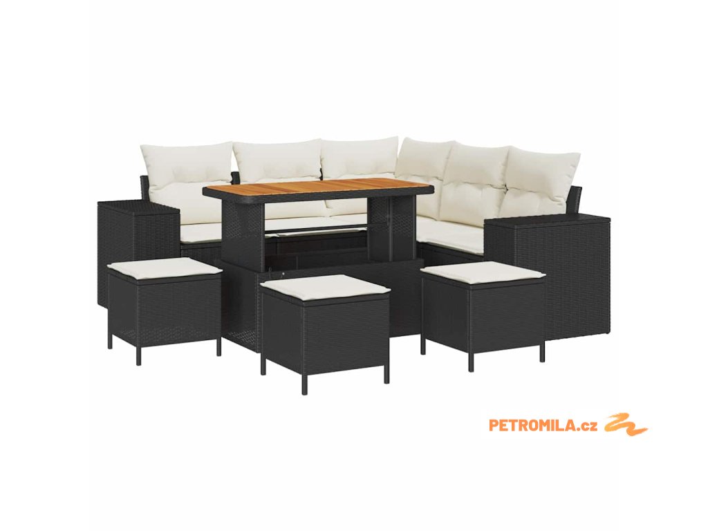 Sada zahradních pohovek 9 pcs Černá polyratan