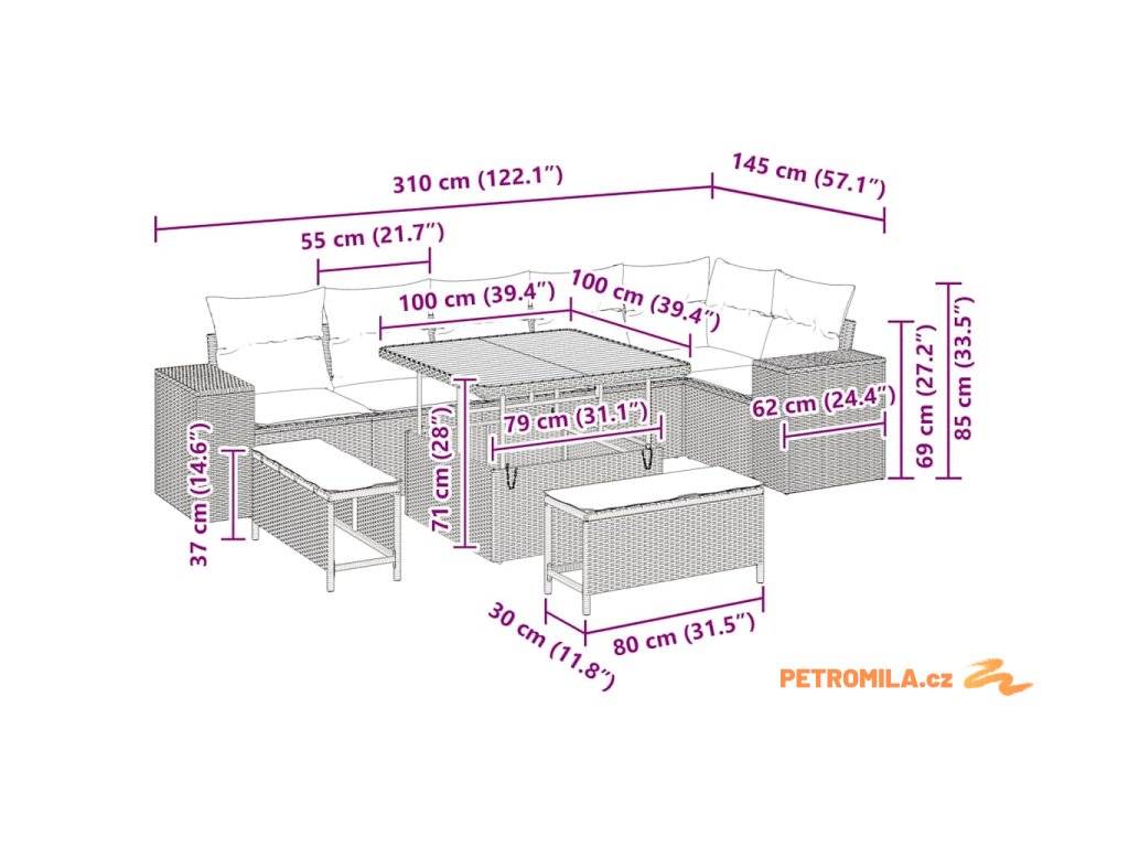 Sada zahradních pohovek s polštářem 9 pcs Béžová Poly ratan