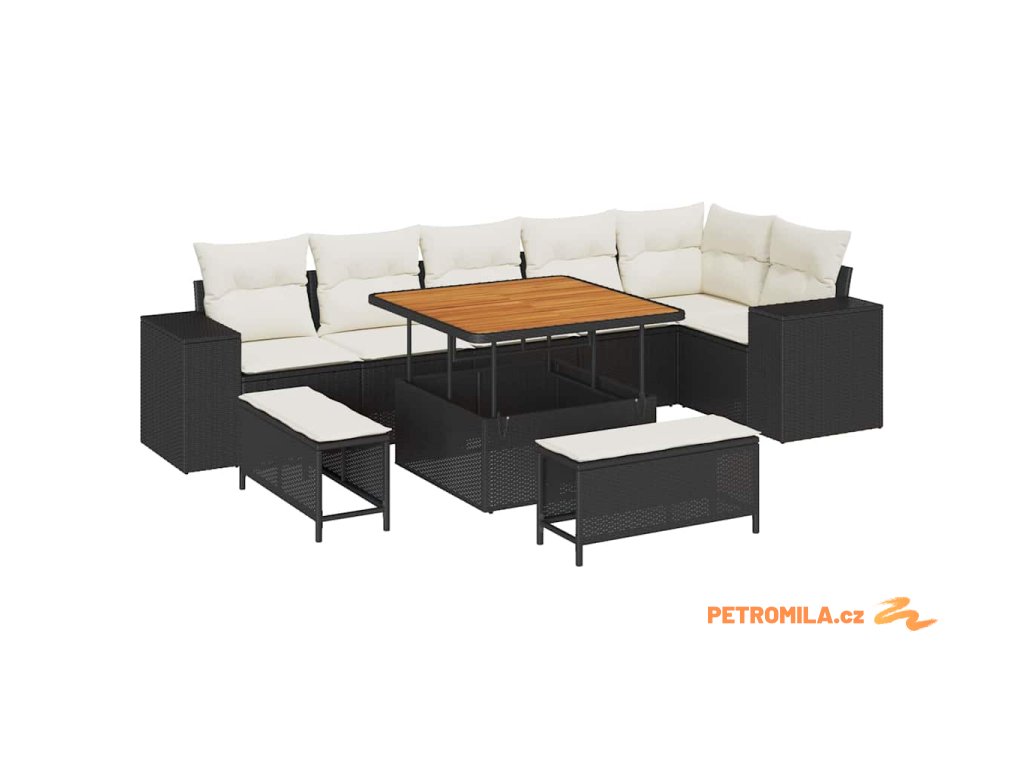 Sada zahradních pohovek s polštářem 9 pcs Černá polyratan
