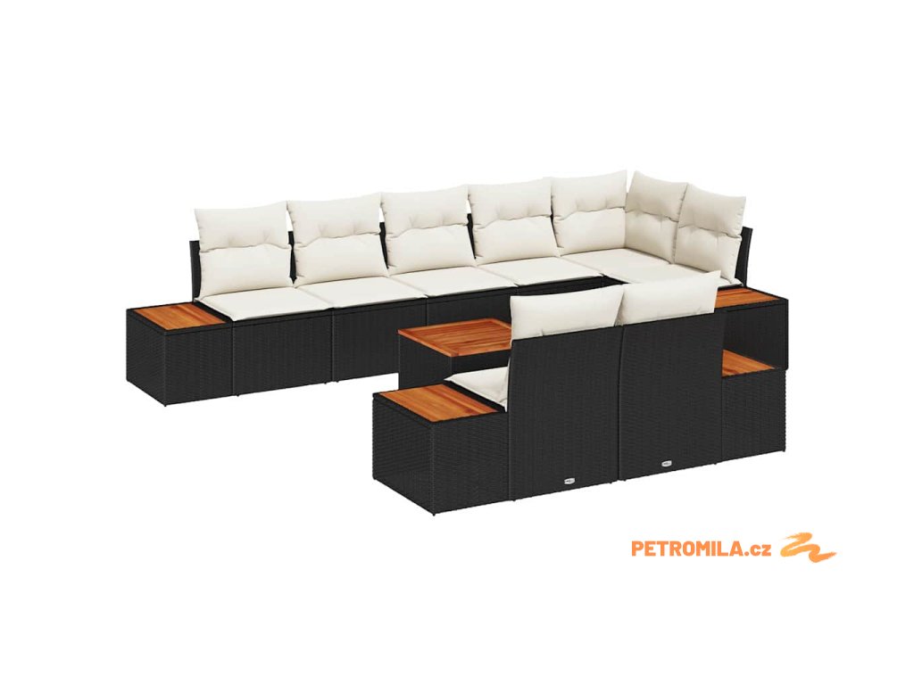 Sada zahradních pohovek s polštářem 9 pcs Černá polyratan