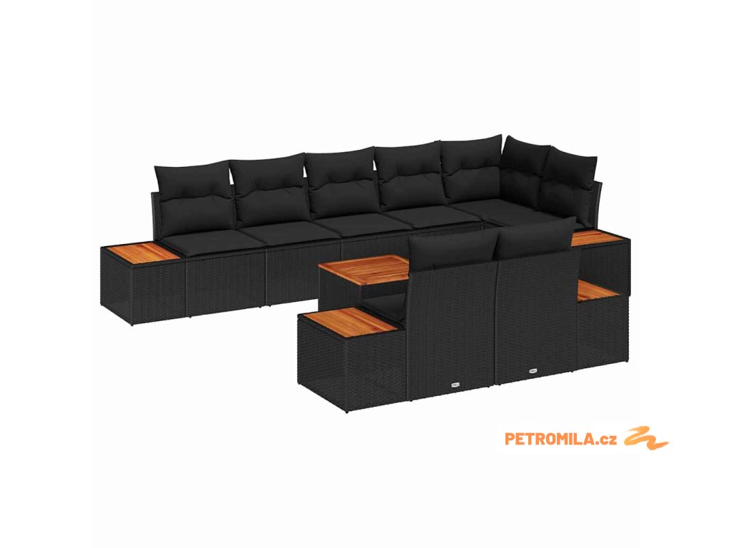 Sada zahradních pohovek s polštářem 9 pcs Černá polyratan