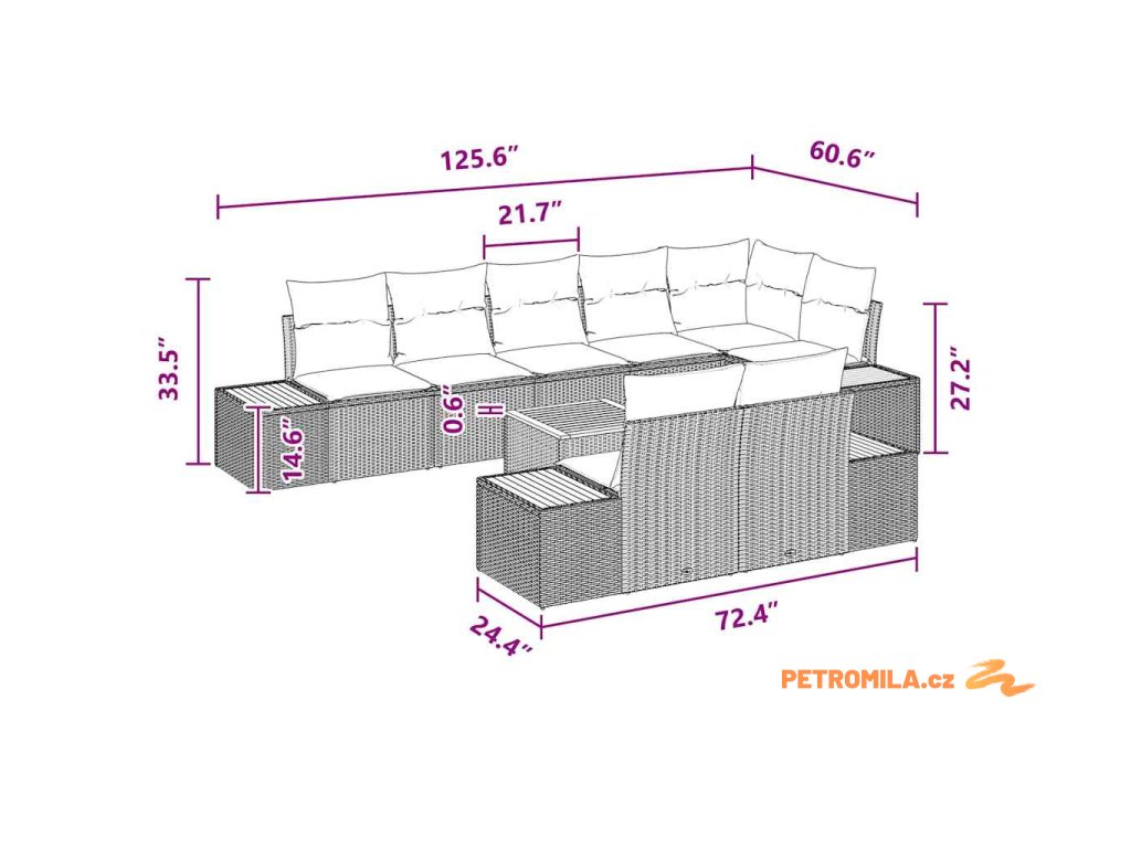 Tahle zahradní pohovka mění pravidla hry v outdoorovém sezení. Má moderní design s čistými liniemi a jednoduchostí, ideální na terasy nebo do zahrady. Pohovka je super pohodlná a praktická, dokonce se dá uspořádat do různých konfigurací, což z ní dělá skvělou volbu na párty nebo pro klidné chvíle sezením venku. Poly ratan ji dodává cool vzhled a měkké polštáře jsou pozvánkou k odpočinku na slunci.
