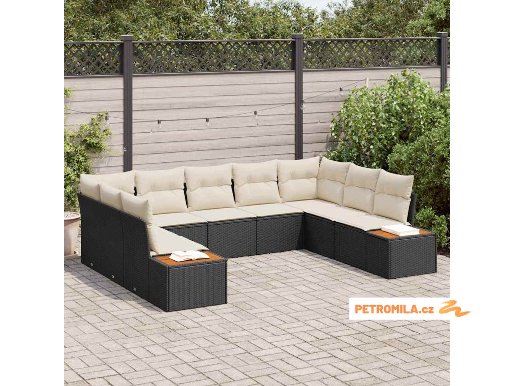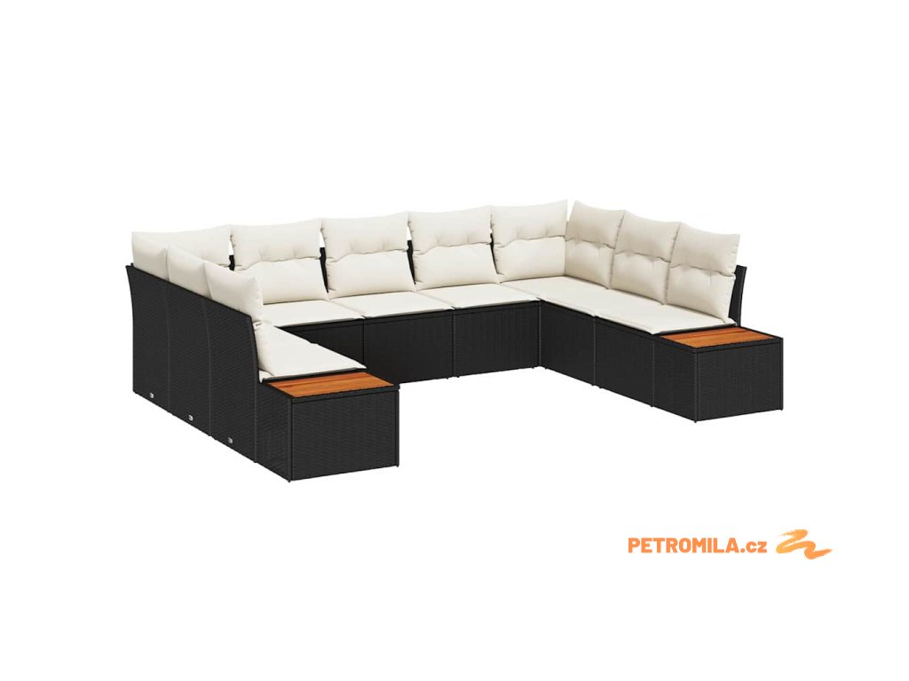 Sada zahradních pohovek s polštářem 9 pcs Černá polyratan
