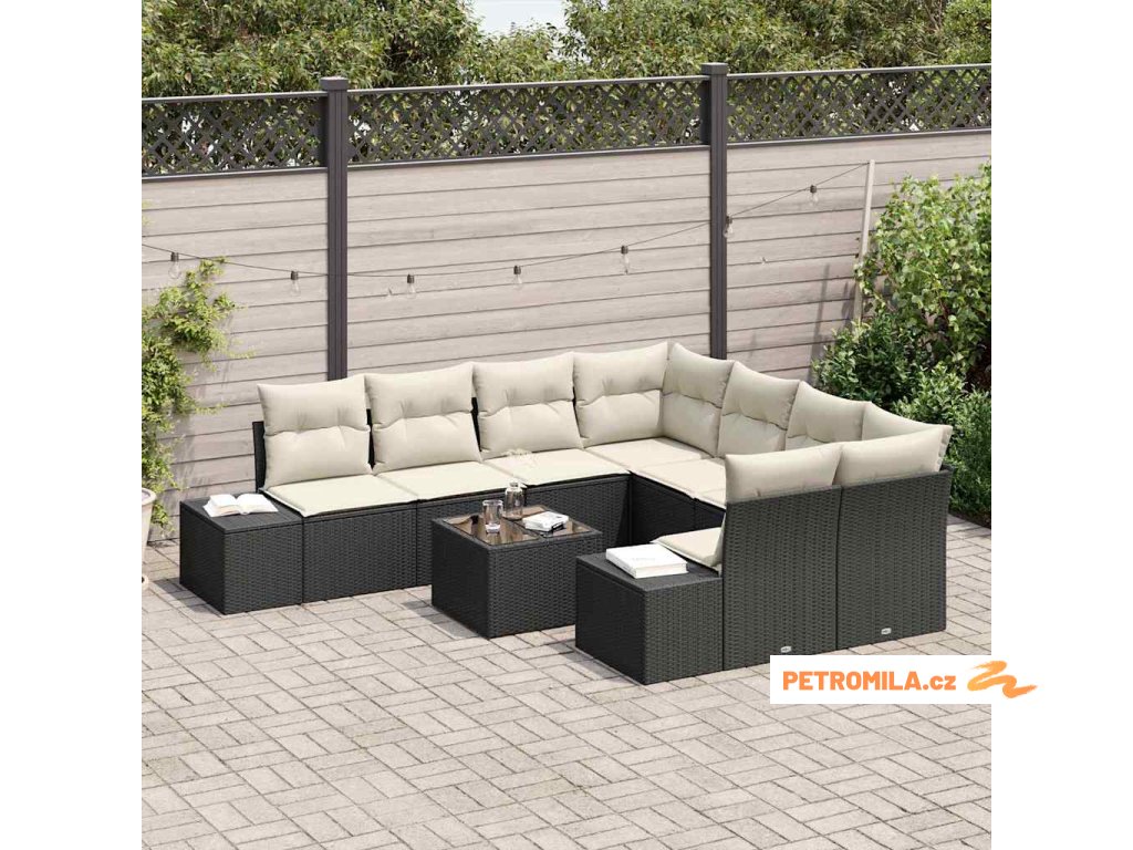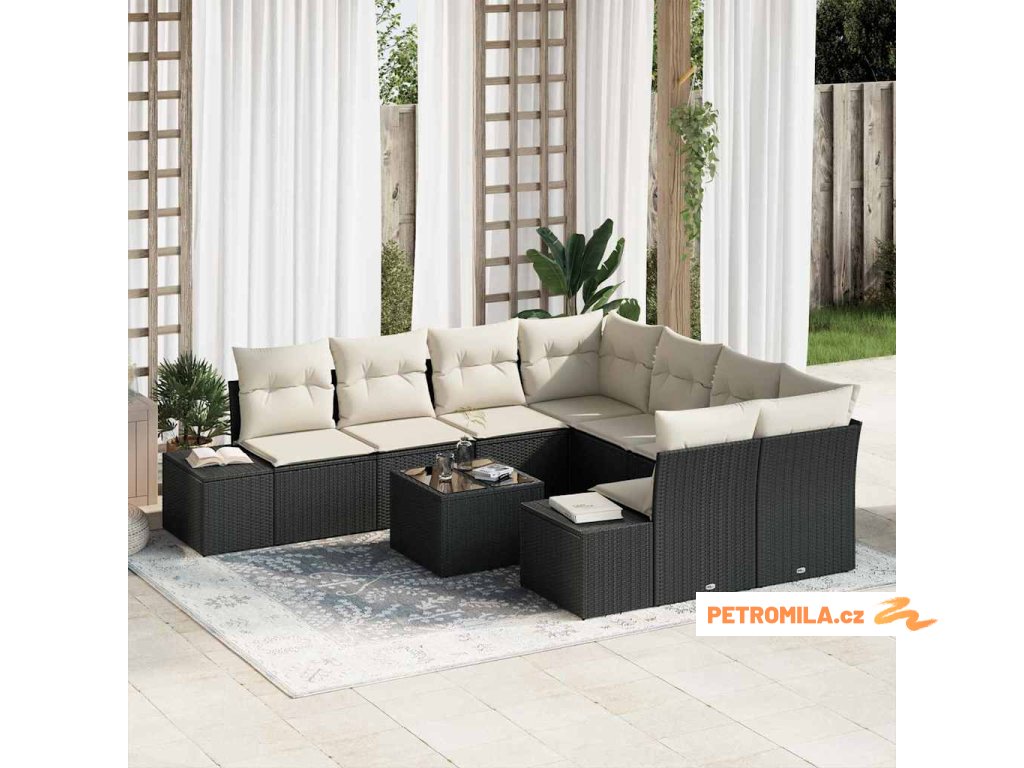 Sada zahradních pohovek s polštářem 9 pcs Černá polyratan