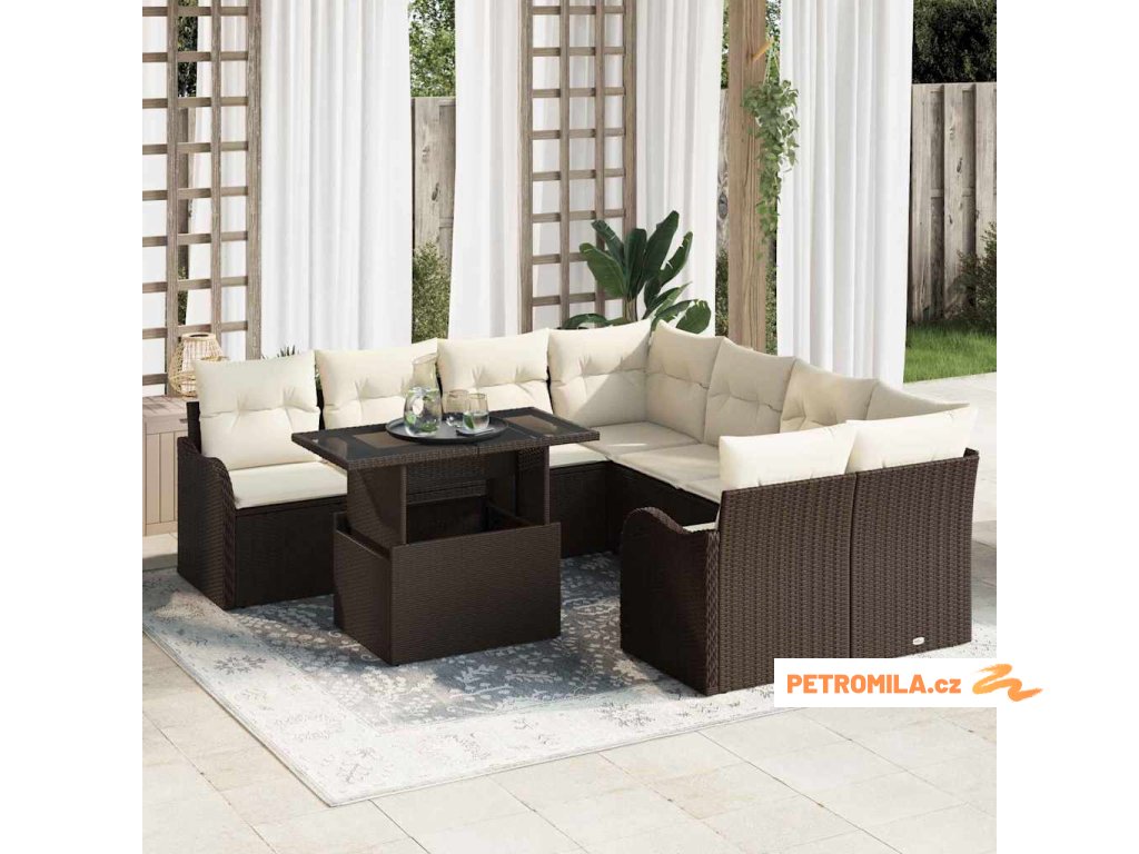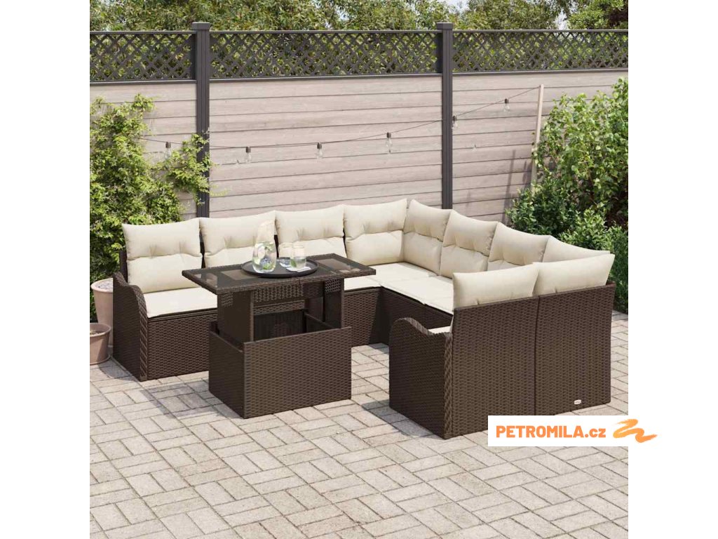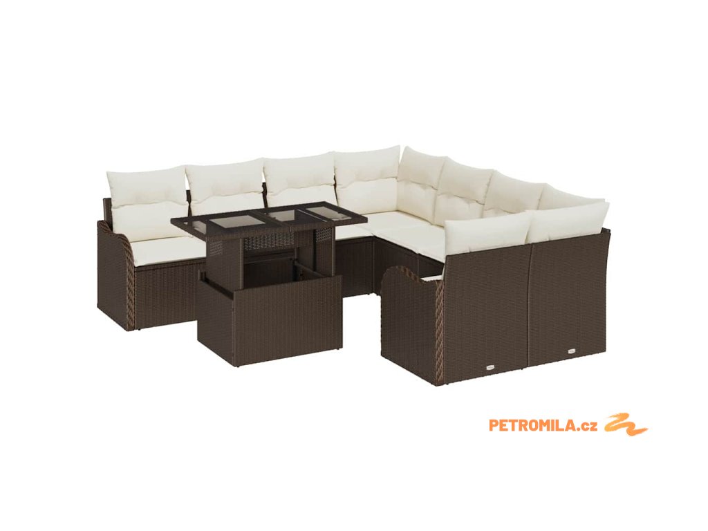 Sada zahradních pohovek s polštářem 9 pcs Hnědá Polyratan