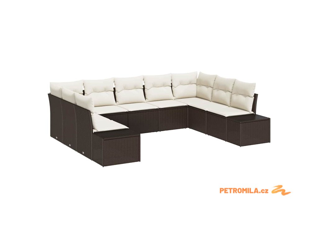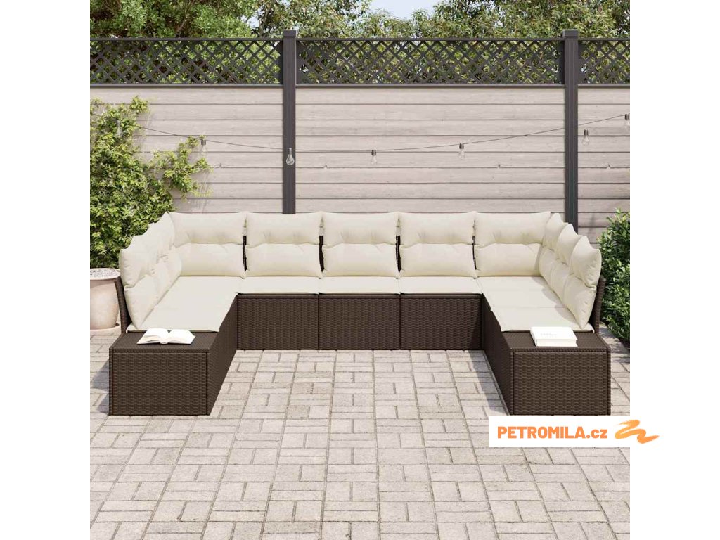 Sada zahradních pohovek s polštářem 9 pcs Hnědá polyratan