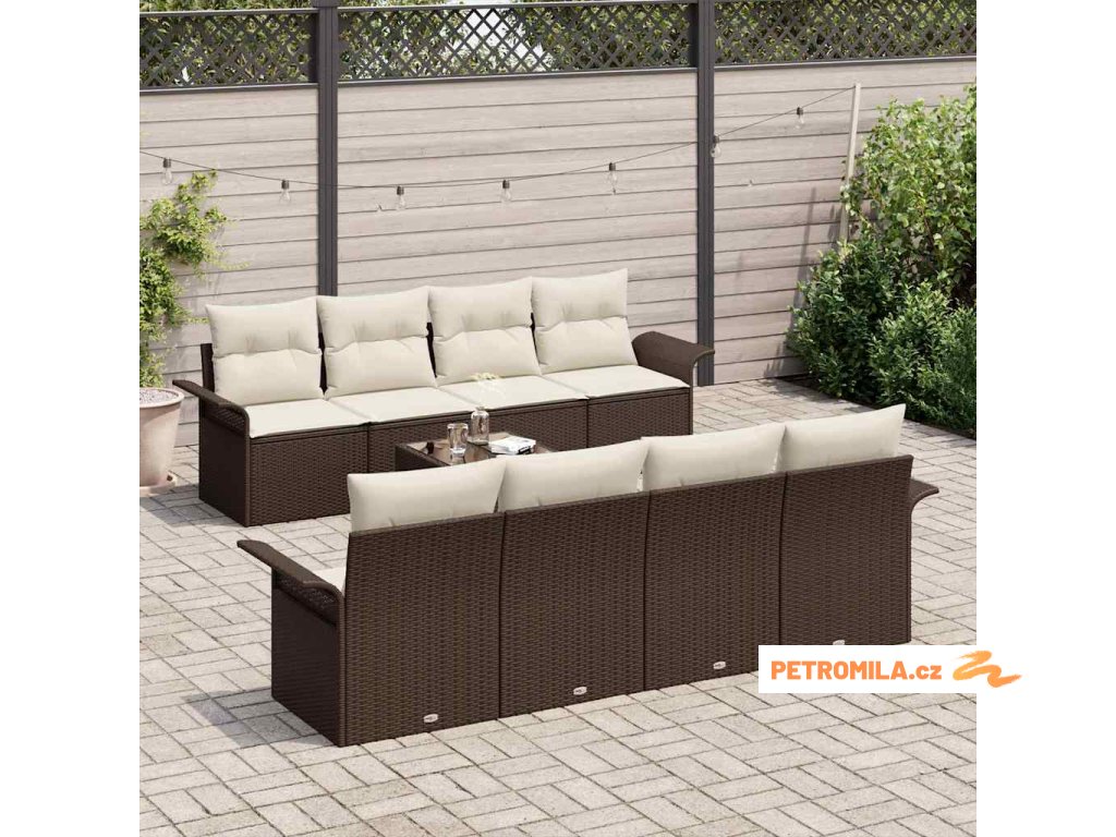 Sada zahradních pohovek s polštářem 9 pcs Hnědá polyratan