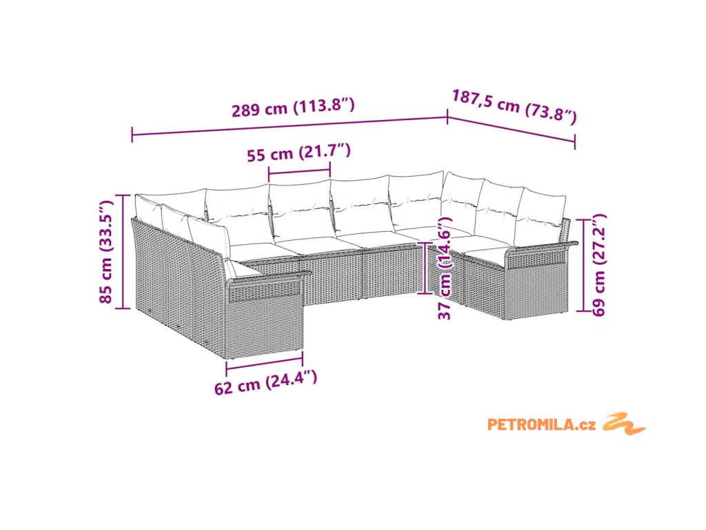 - 11 x Zádový polštář: 55 x 55 cm (DxŠ)