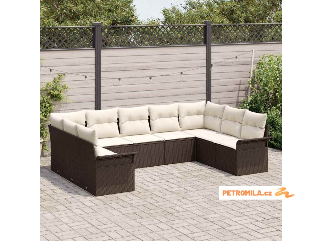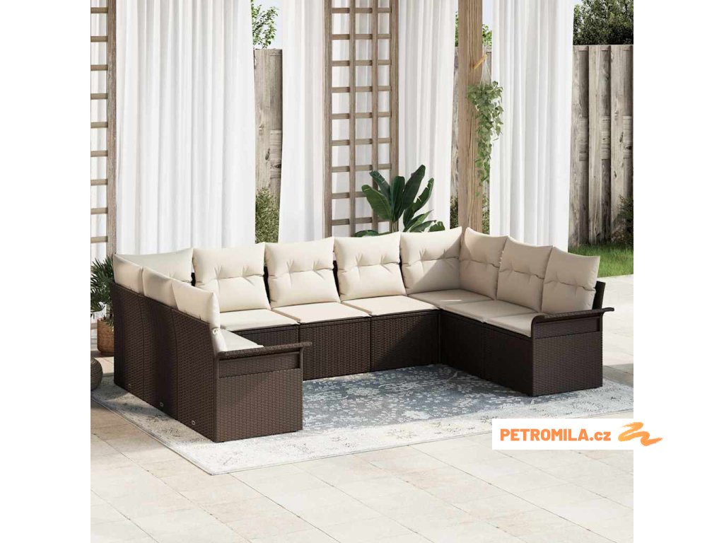 Sada zahradních pohovek s polštářem 9 pcs Hnědá polyratan