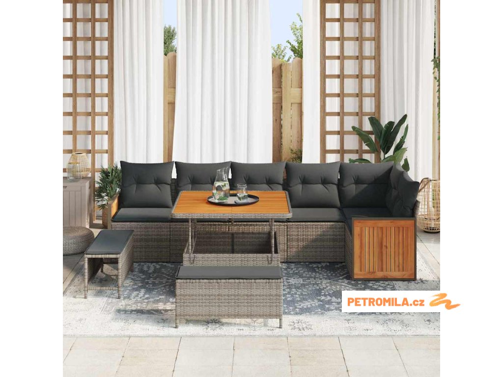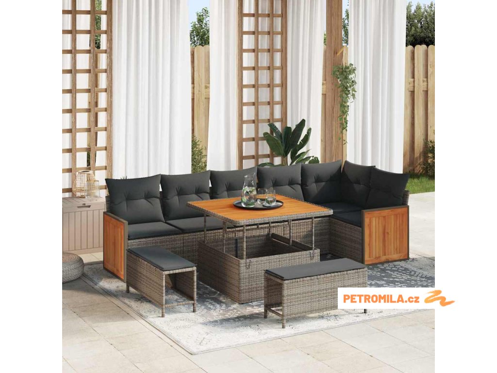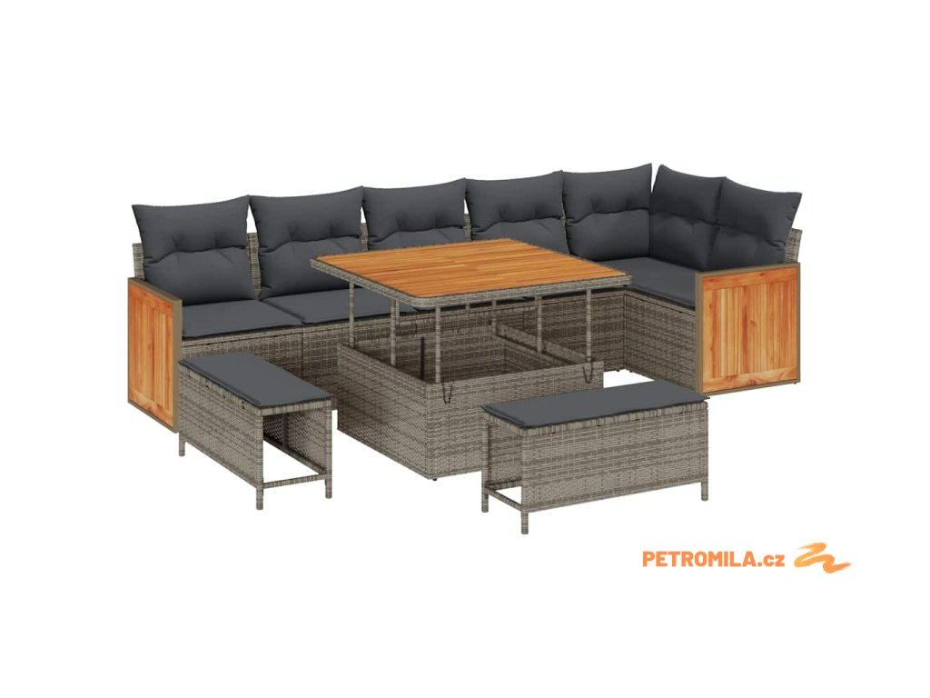 Sada zahradních pohovek s polštářem 9 pcs Šedá
