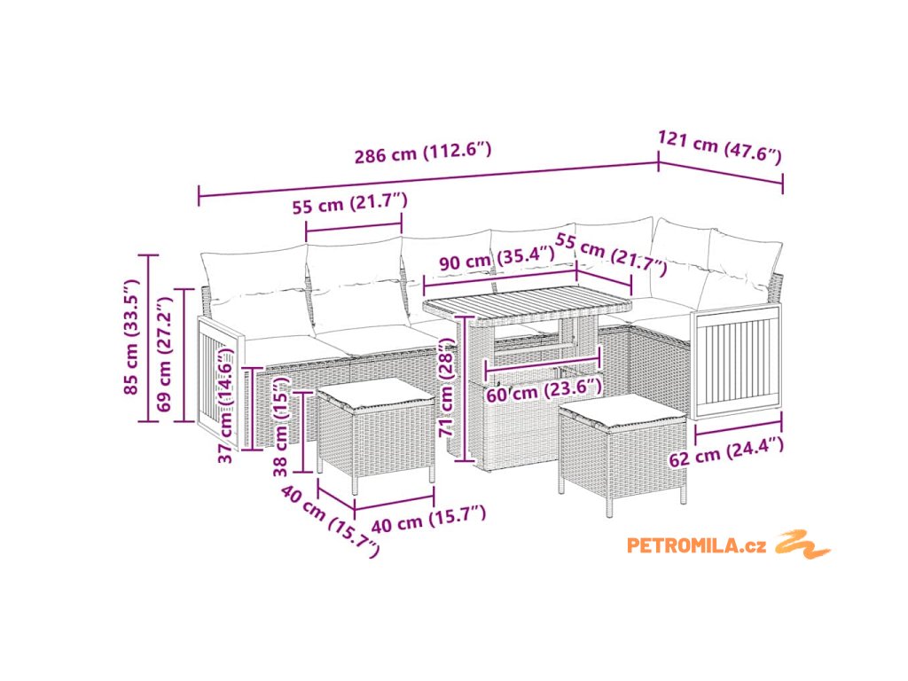 • Údržba a péče: Aby pohovka vypadala dobře, zakrývejte ji, když ji nepoužíváte, a utírejte ji vlhkým hadříkem. Tyhle jednoduché kroky pomohou udržet soupravu v dobrém stavu na dlouho, takže si můžete užít bezstarostné chvíle.