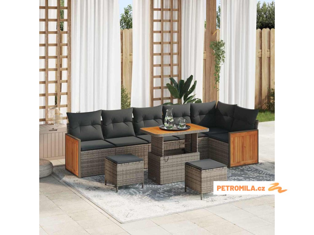 Sada zahradních pohovek s polštářem 9 pcs Šedá