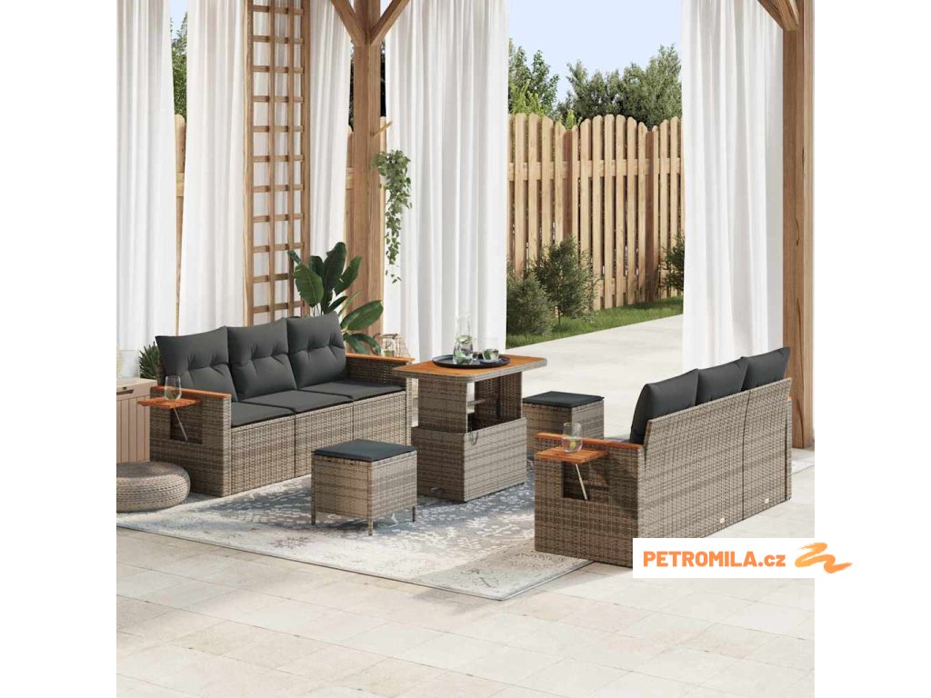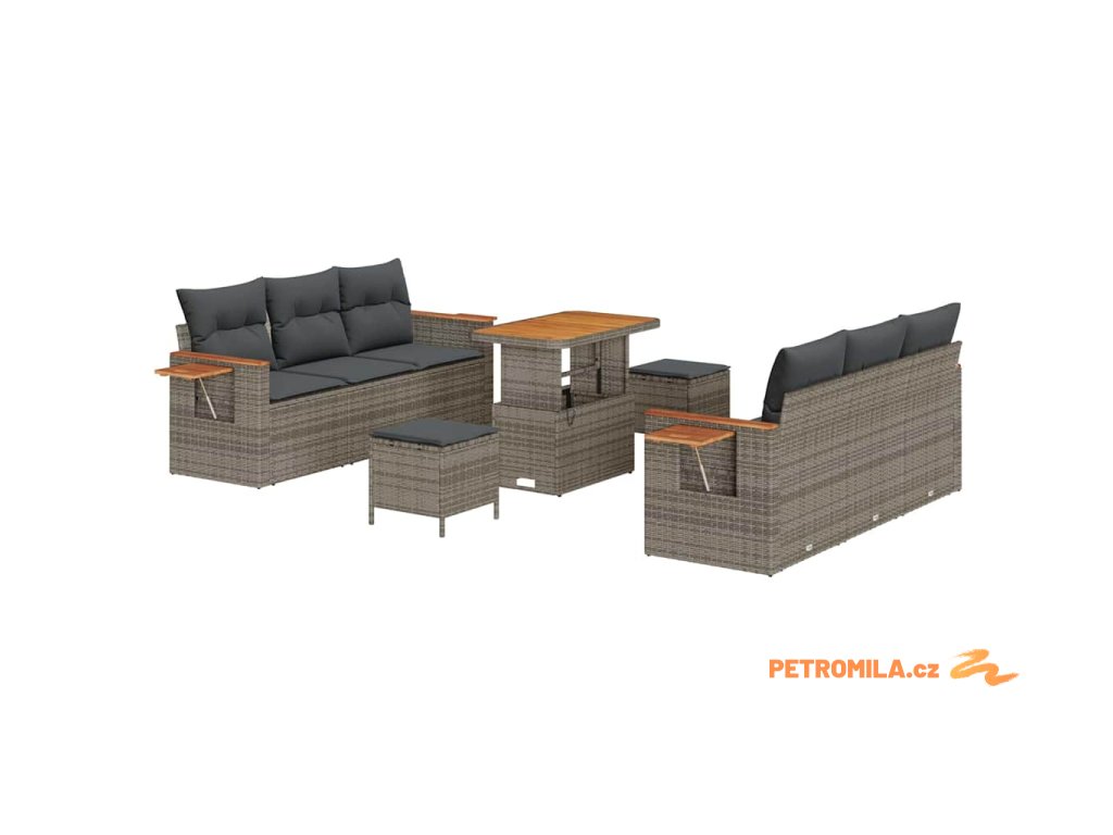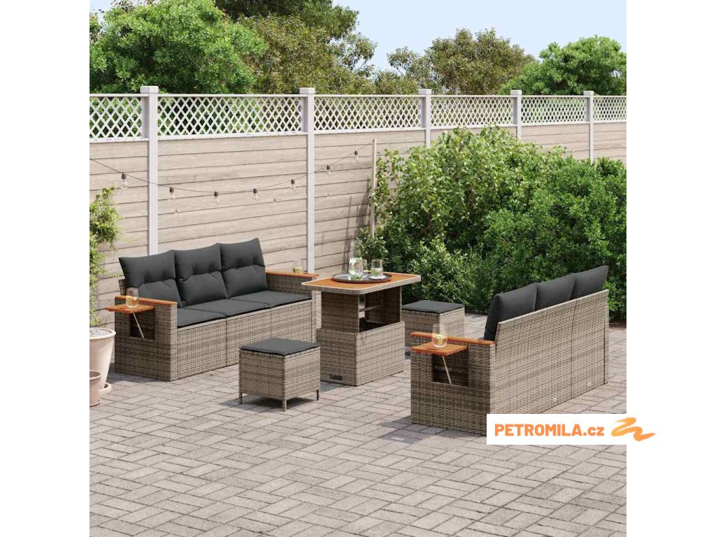 Sada zahradních pohovek s polštářem 9 pcs Šedá