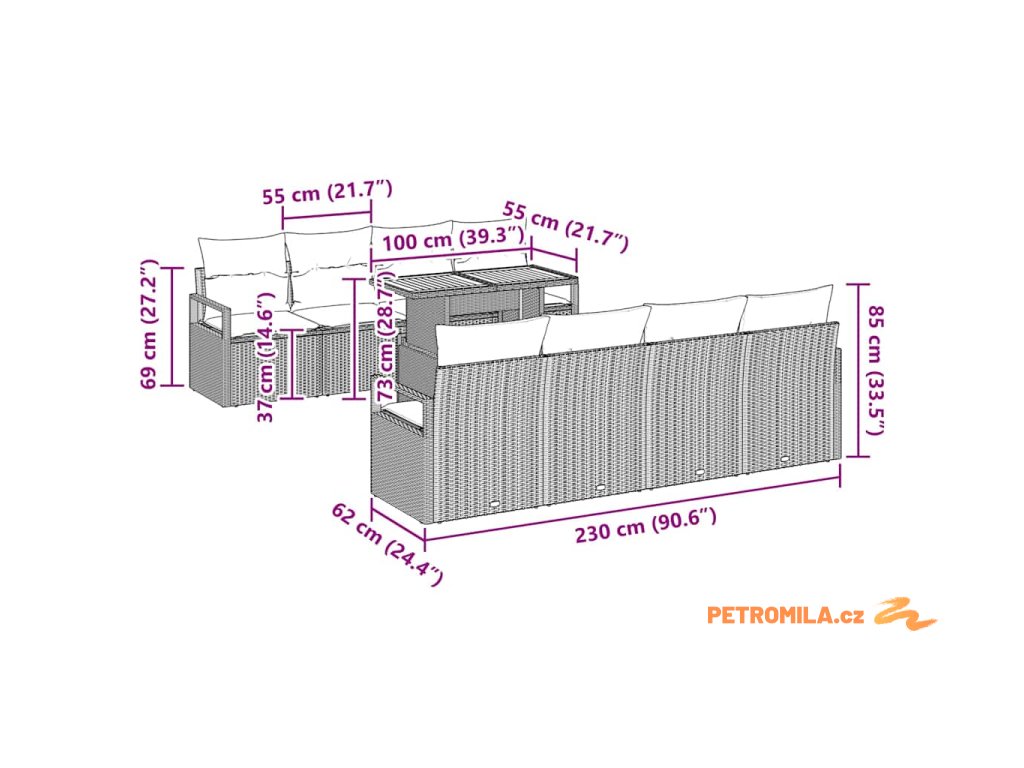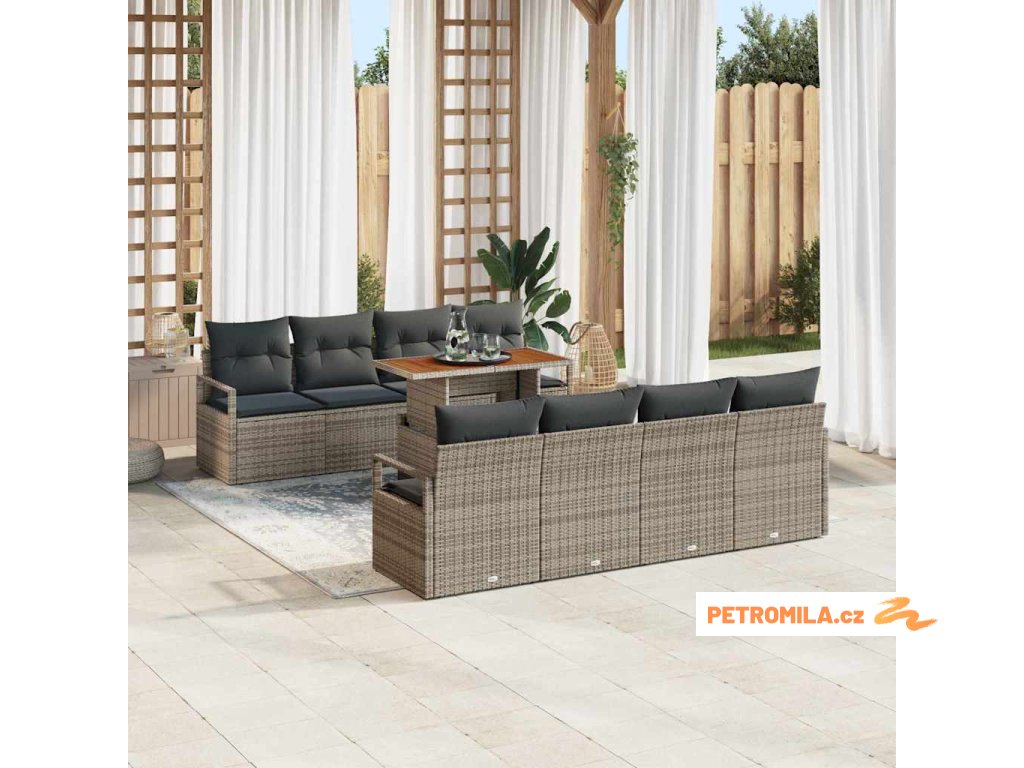 Sada zahradních pohovek s polštářem 9 pcs Šedá a hnědá