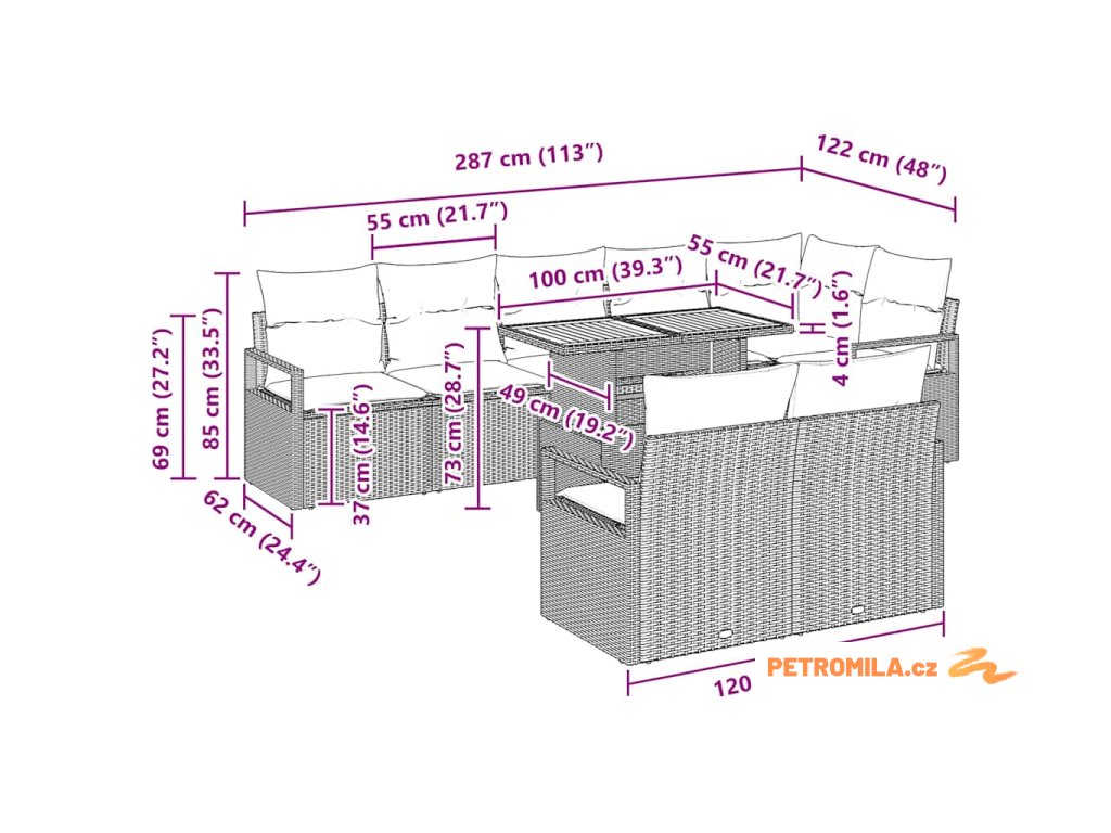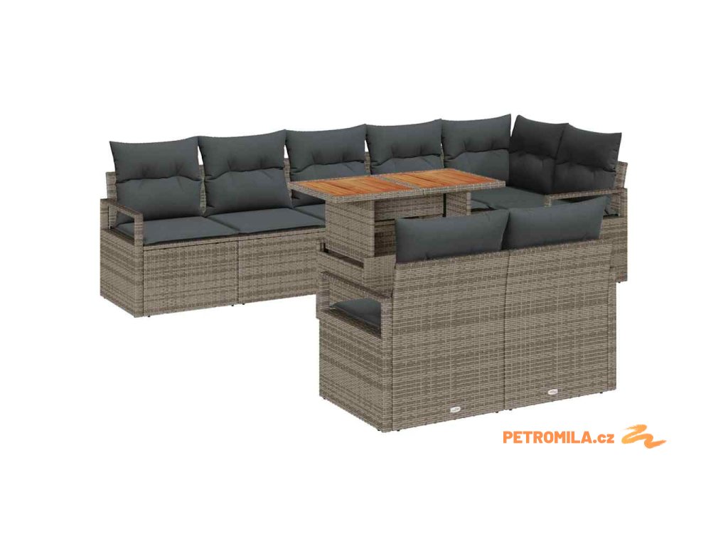 Sada zahradních pohovek s polštářem 9 pcs Šedá a hnědá