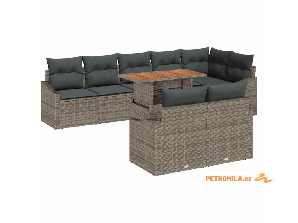Sada zahradních pohovek s polštářem 9 pcs Šedá a hnědá