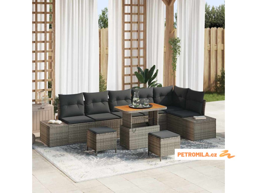 Sada zahradních pohovek s polštářem 9 pcs Šedá Poly ratan