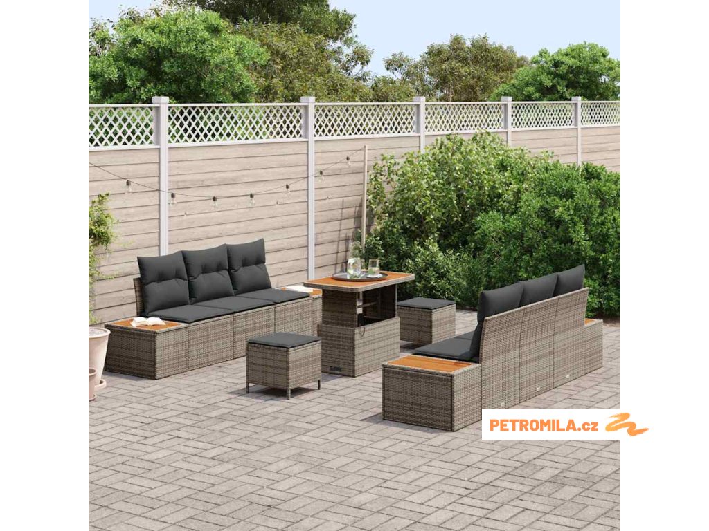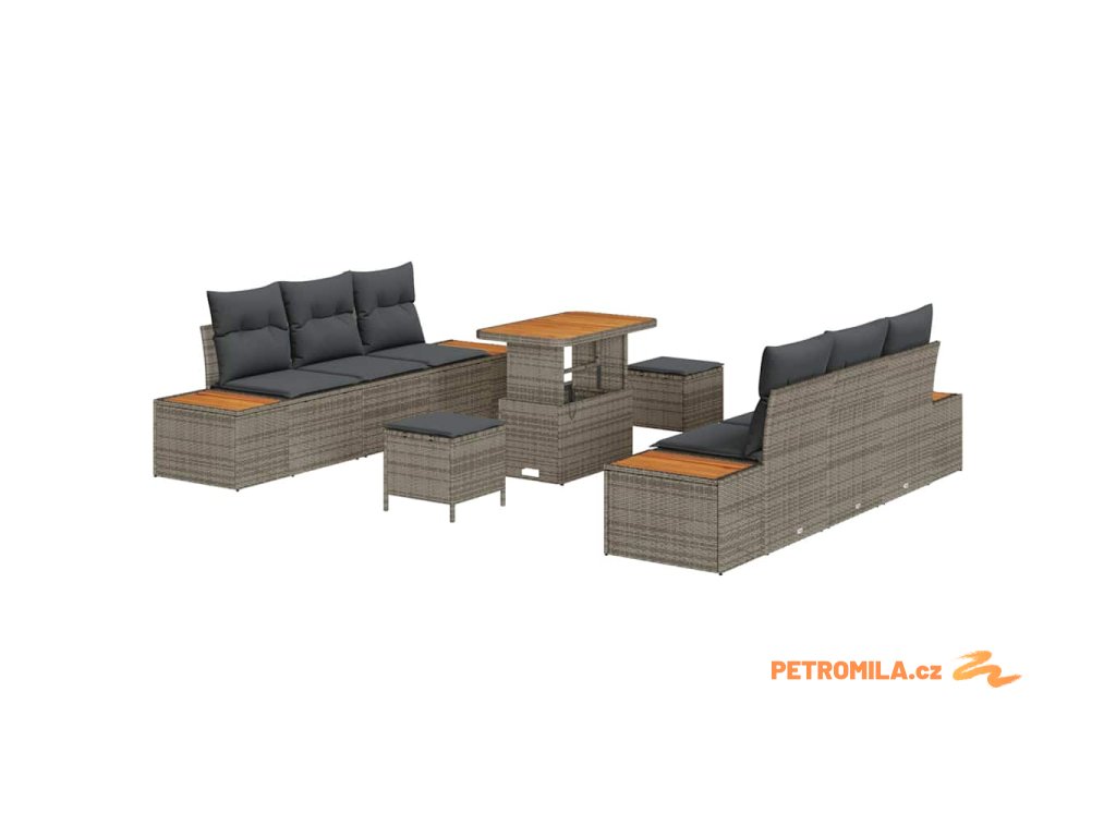 Sada zahradních pohovek s polštářem 9 pcs Šedá Poly ratan