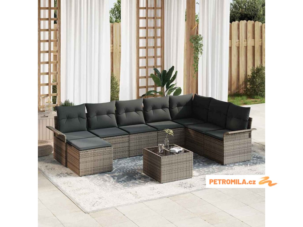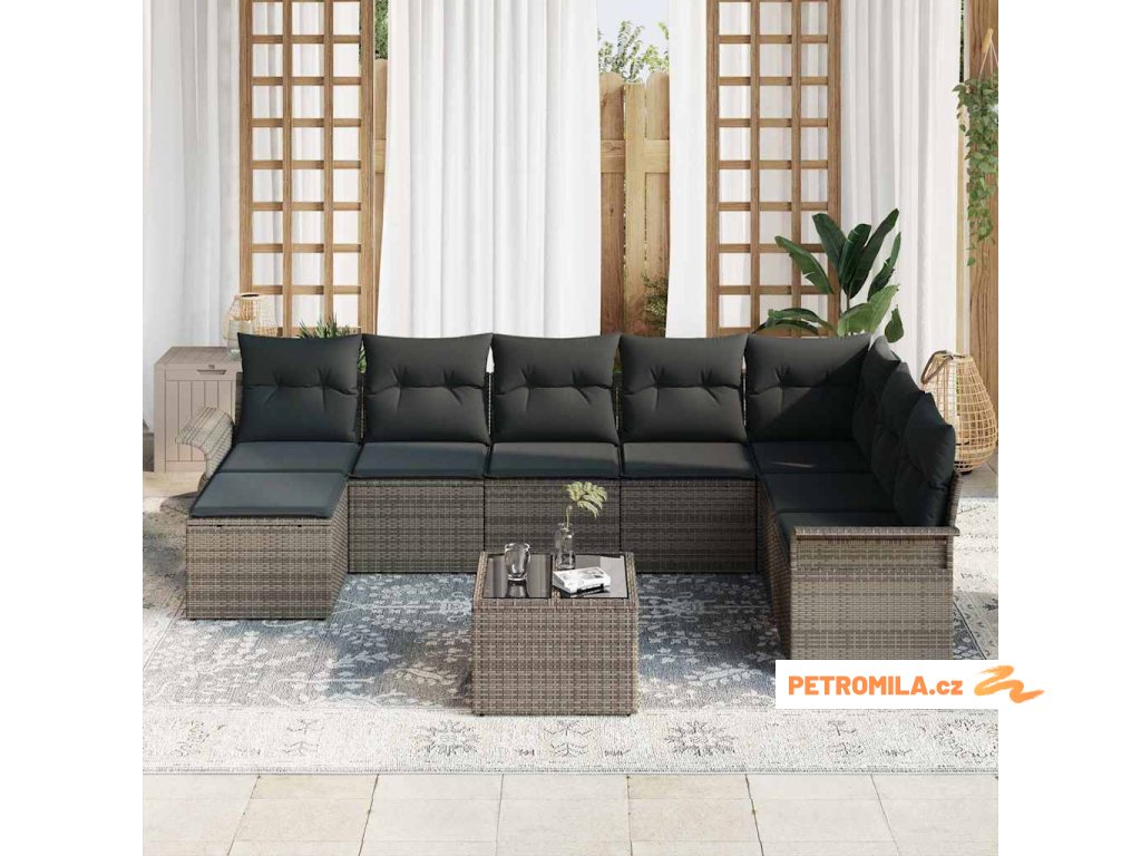 Sada zahradních pohovek s polštářem 9 pcs Šedá Poly ratan