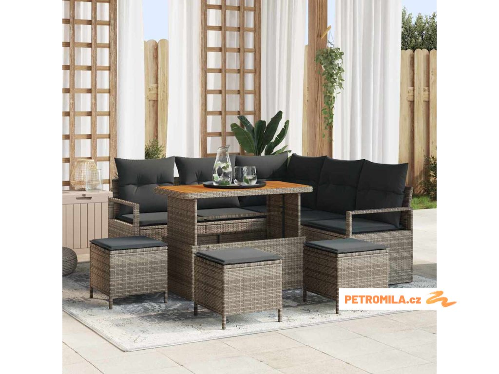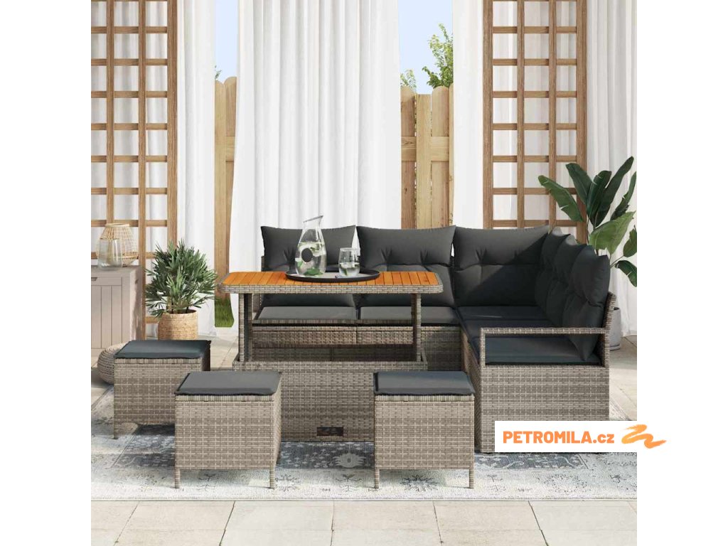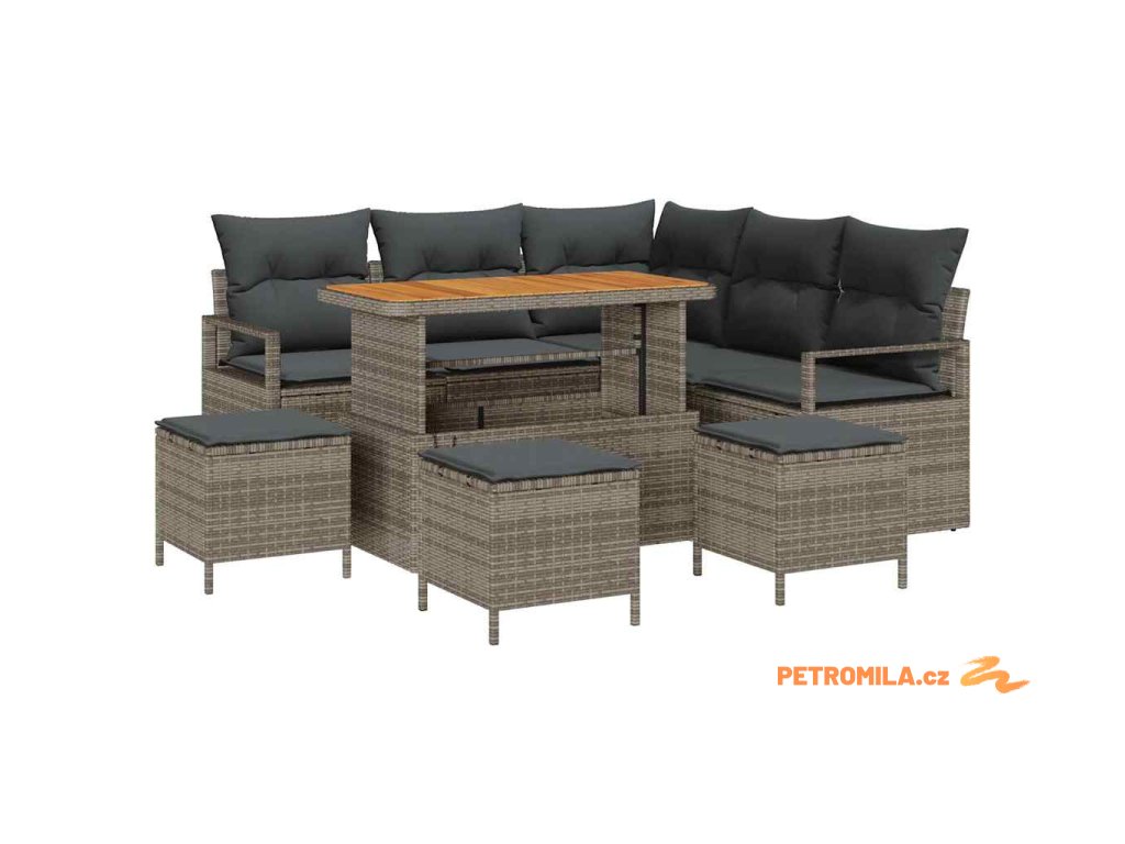 Sada zahradních pohovek s polštářem 9 pcs Šedá Poly ratan