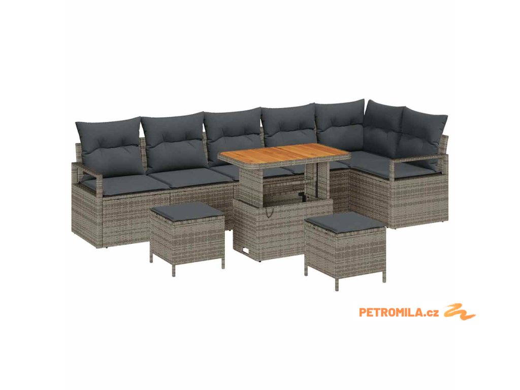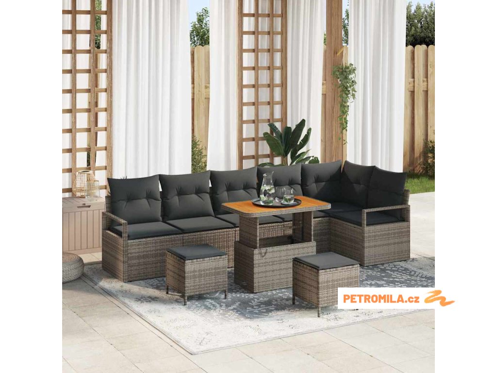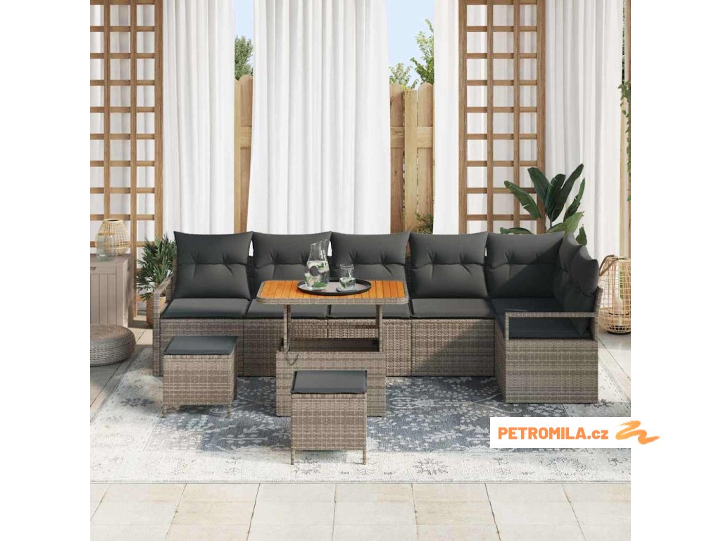 Sada zahradních pohovek s polštářem 9 pcs Šedá Poly ratan