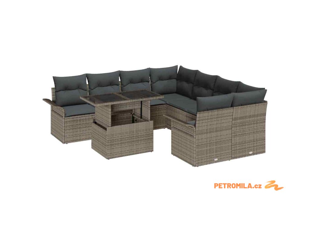 Sada zahradních pohovek s polštářem 9 pcs Šedá polyratan