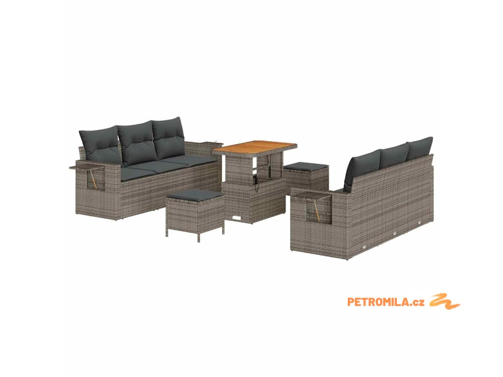 Sada zahradních pohovek s polštářem 9 pcs Šedá polyratan