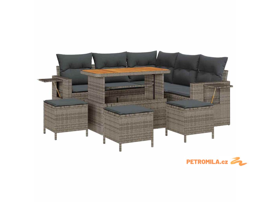Sada zahradních pohovek s polštářem 9 pcs Šedá polyratan